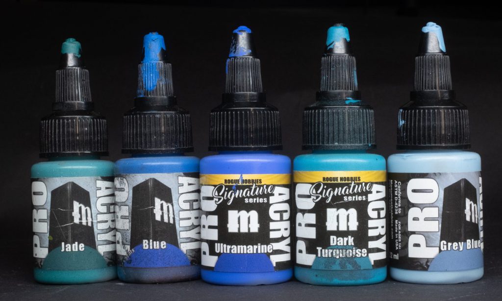 Dark Sea Ben - One of Ben Komets’ signature paints, and currently the only paint in the ProAcryl range that doesn’t really describe all that well what it is in the name: Dark Sea Ben is a dark, somewhat desaturated marine blue-green. I use this one quite to create an easy blue-green shadow upon which I can build just about anything. It’s also satin, for some reason.