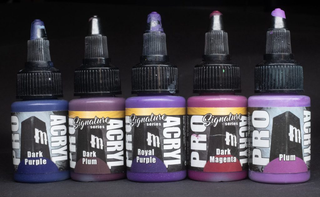 Royal Purple - Rich and regal, as the name suggests Royal Purple draws on the historic connection between purple and royalty, this paint from the Vince Venturella signature series is not really a copy of the Tyrian Purple beloved of Roman emperors and their families but it is very pretty, and great as a midtone for all manner of cloaks, banners, alien skins, and heresy Emperor’s Children Space Marines!