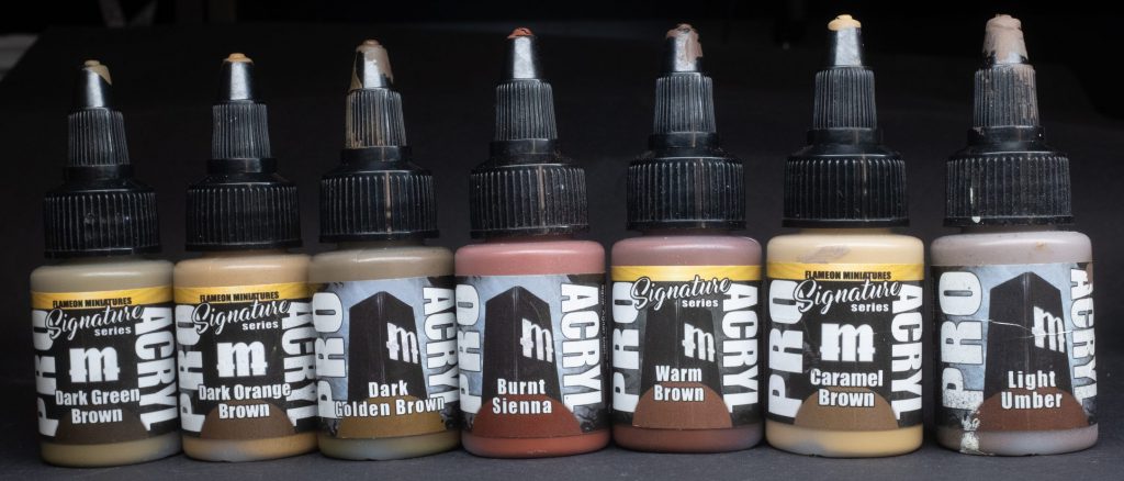 Dark Golden Brown - Strange paint, this one. Not because of the colour, it’s a darker version of the Golden Brown found in the “Yellows” section of this article, no, it’s strange because my bottle splits constantly. Unlike any of the other ProAcryl paints, the moment I look elsewhere the paint in the bottle neatly divides itself between two neat strata of a ruddy orange and a warm green. Getting them to recombine takes a hell of a lot of shaking, perhaps I received a faulty bottle or perhaps this is just normal for Dark Golden Brown, but it’s strange enough that it warranted a mention.