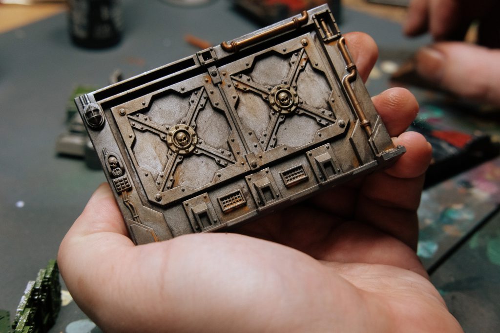 The grime and muck collects nicely in the recesses and the smooth transitions from the removal already gives a nice weathered look with almost no effort, with a bit of chipping from silver paint on a sponge the terrain ultimately looked really nice, I'm proud of it!