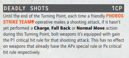 The Phobos Strike Team gets a small buff in the form of a new Strategic Ploy that can buff their weapons in certain circumstances: