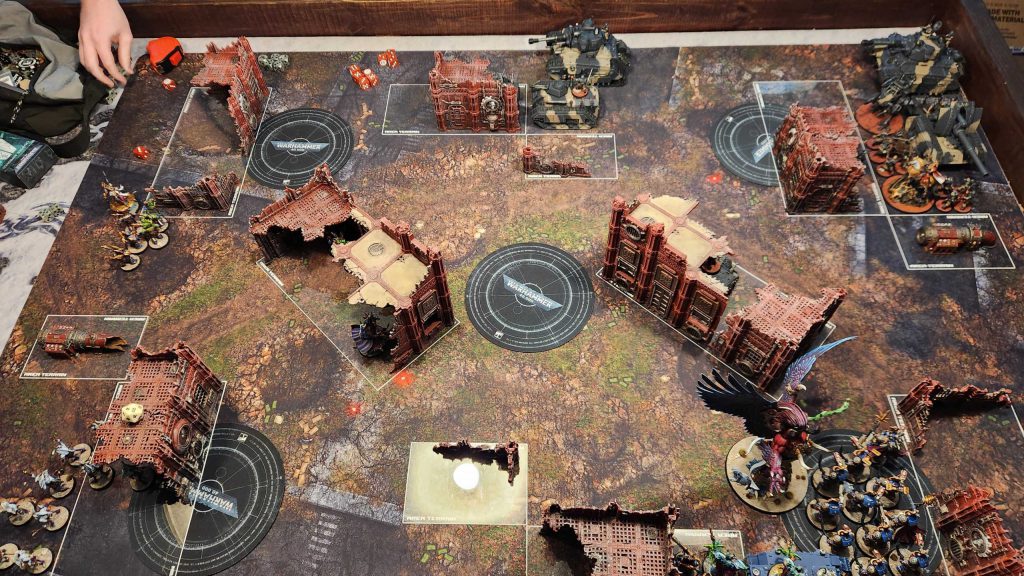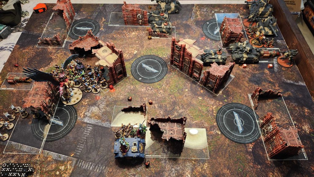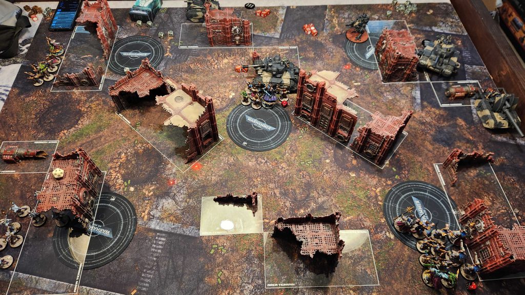 The Astra Militarum are a tough matchup for Thousand Sons. They can deep strike all over the table, recur units, and generally speaking trying to kill multiple tanks per turn is pretty tough. It's even worse for my list, where the volume of 3-damage shooting they can dump out absolutely destroys my Scarab Occult Terminators. My general game plan against Guard is to destroy at least one Dorn before it can shoot me, and try and minimize the number of shots I take early. I haven't really had much success in that vein yet.