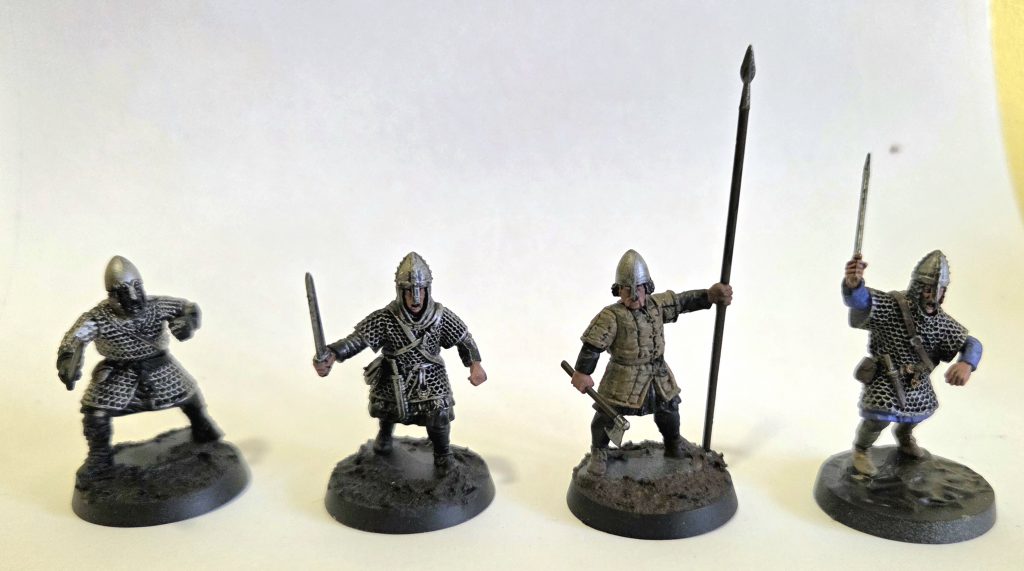 The “dark ages” were actually full of colour, no matter what film and TV want us to believe. Choosing three different colours, I go around all the models, putting one or two colours on each model. I try to avoid replicating schemes, but don’t pay too much attention: If it looks good, its alright with me.