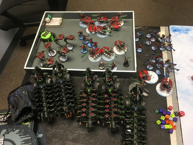 My turn two the remaining Arks and Wraiths die and the whole board is zoned out so none of my heavy shooting can be touched by his deep striking Destroyers. He looked at me and said "I don't even want to play it out."