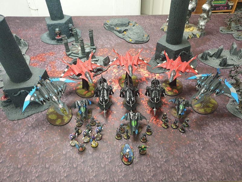 The planes, as is standard, act as a screening or first-turn go second charge blocker from things like Genestealer/Boyz blobs and the dreaded Lord Discordants and then screening thereafter as appropriate. The Wraithseers are both surprisingly tough and surprisingly fast after advancing on T1. The nice thing about these guys is that with the Wraithcannons I can still fire after advancing which means I can also Fire & Fade to get one of them up the board even quicker, representing an immediate big boi threat by T2. The Slicey Bois act as support for the Wraithseers, providing a mass of attacks that they otherwise do not have.