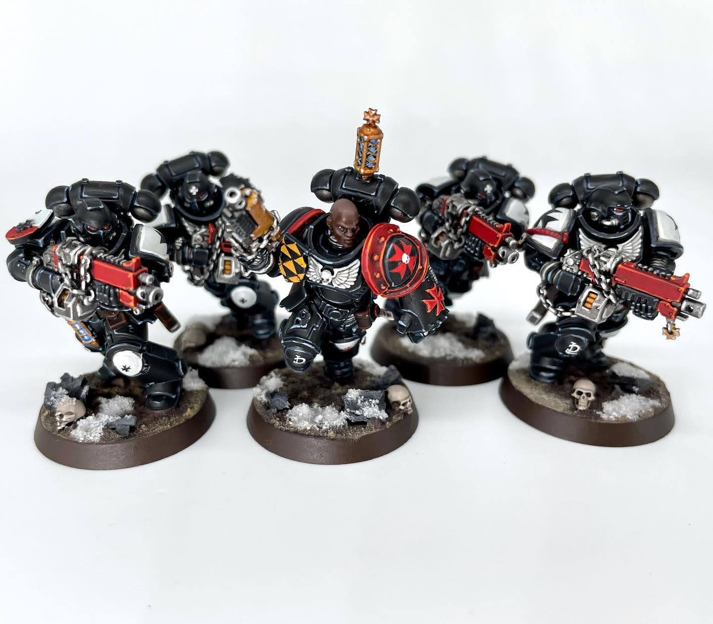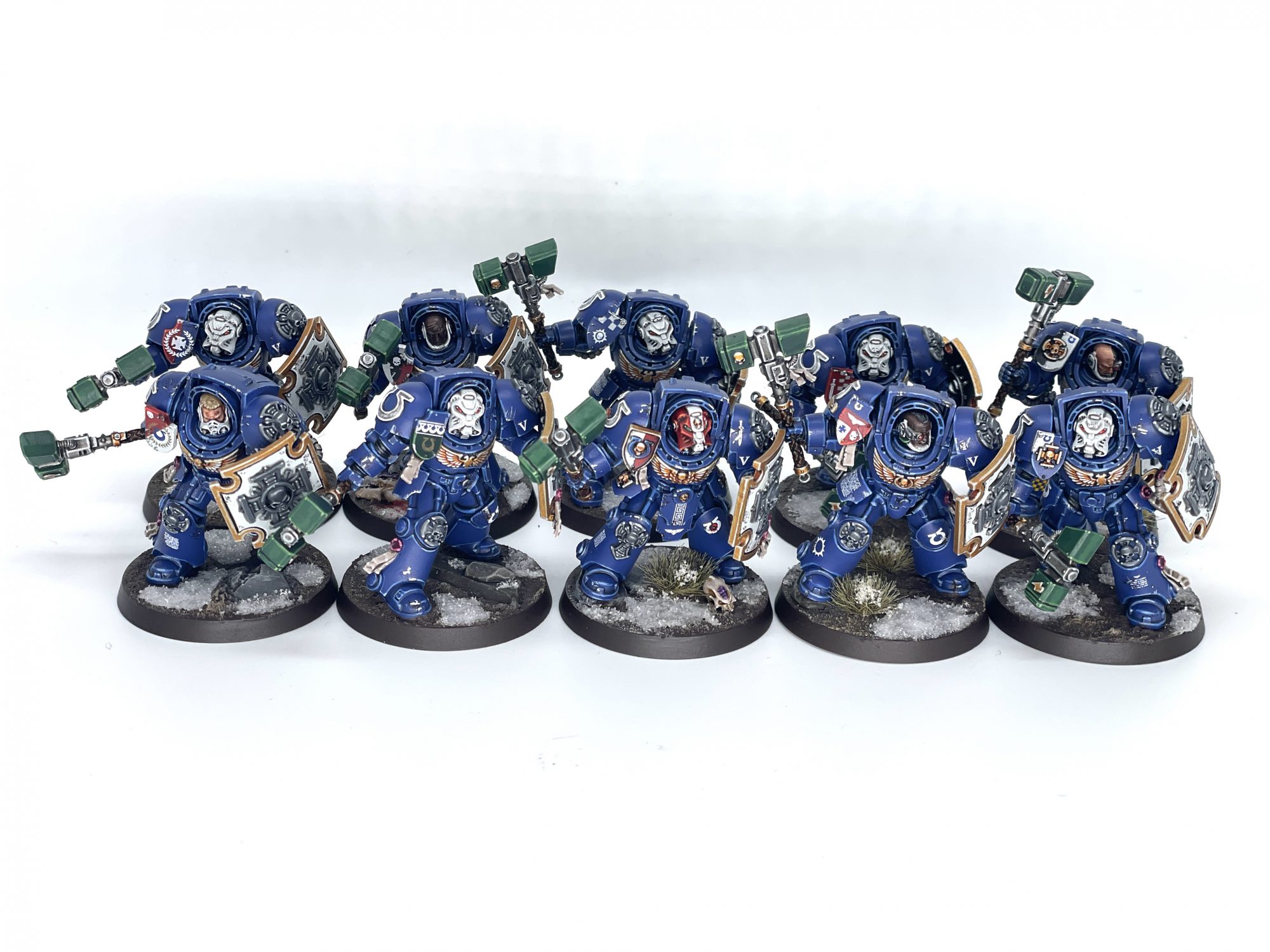 Ultramarines Terminator Assault Squad with Thunder Hammers and Storm Shields. Credit: SRM