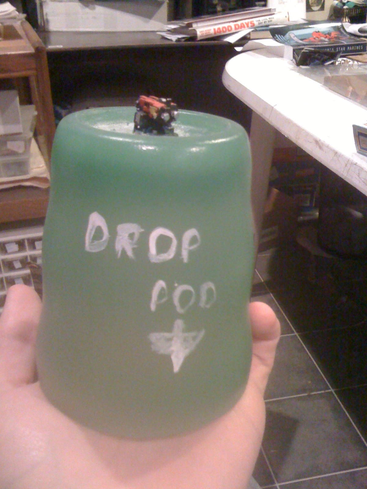 So one time in college I had a 2000 point game against a Necron player, and he had two Monoliths. The first was the GW kit of the time, all built and painted, while the second was roughly two dozen Yu-Gi-Oh! cards taped together to form the silhouette of a second Monolith. A friend of mine would run a paper cutout of an Autarch standing upright on a plastic base, as he didn’t have the model yet. As no Warhammer player is free from sin, in high school, I wanted a Drop Pod, but couldn’t afford the expensive Forgeworld model. Instead, I used a cup with a stormbolter glued to it and the words “DROP POD” hastily scrawled on the side. These are jankier examples of proxies colored by the follies of youth, but the practice can also range from using a Repulsor as a Repulsor Executioner for a game, or using some unofficial but similar third party or scratch built miniature instead of an official model. It’s a common practice when trying out new units you haven’t painted yet, or if you just want to express your creativity and make something unique. Whether it’s using a tissue box for a Rhino or a lovingly crafted and unique piece of art, the concept remains the same regardless of execution: A proxy is astand-in for another model.