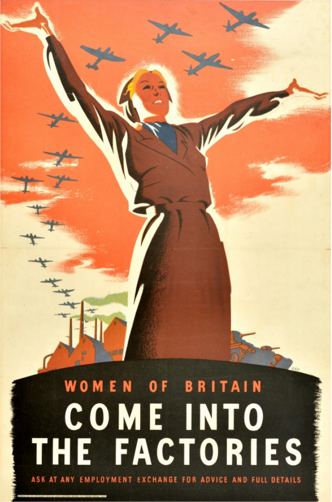 A British WW2-era poster encouraging women to join the industrial workforce