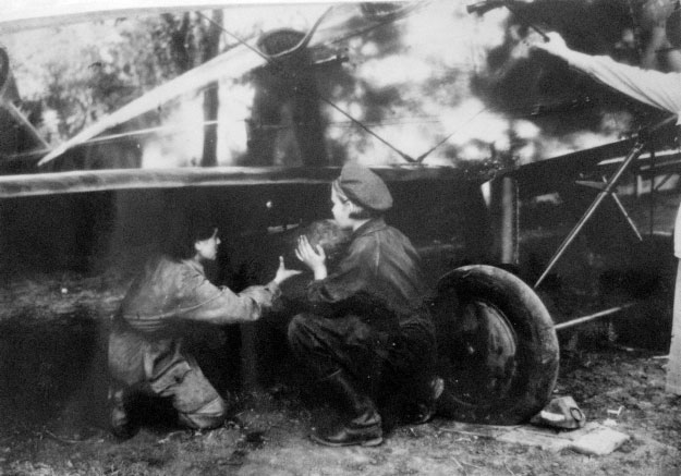 Of the three regiments, the night bombers were the most poorly equipped. The 586th Fighter and 587th Day Bombers were equipped with the latest Yak fighters and Pe-2 bombers, at a time when there was a desperate shortage of planes. The night bombers, however, had to make do with the Po-2, a pre-war training biplane never intended for combat. The biplanes were without radios, armour, bomb bays or sights, and were only equipped with parachutes and machine guns near the end of the war. They only had four small bomb racks, and a top speed of 120km/hour. Despite their limitations and vulnerabilities for daytime use, they were effective enough at night, flying low (around 1200 metres, any lower and they risked blowing themselves up) and exhausting German troops with continuous harassment. They flew without instruments, only watches, compasses and eyesight, pilot and navigator communicating through a tube.