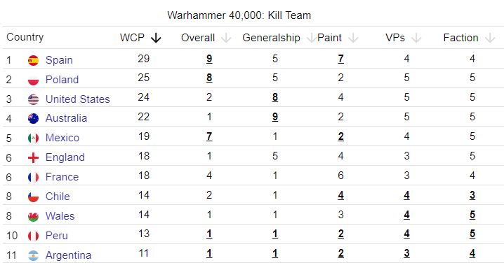Aleksa was a worthy winner of the tournament and became the first world champion of kill team, he beat all of us Spaniards and other great rivals, so Hatts off to the new champion and congratulations on his massive victory. On the other hand, thanks to the efforts of the whole team as a country, we were able to get enough points for Spain to get the best country performance of the Kill Team event, and thanks to that we can achieve a fifth position on the Overall score of all the games systems.