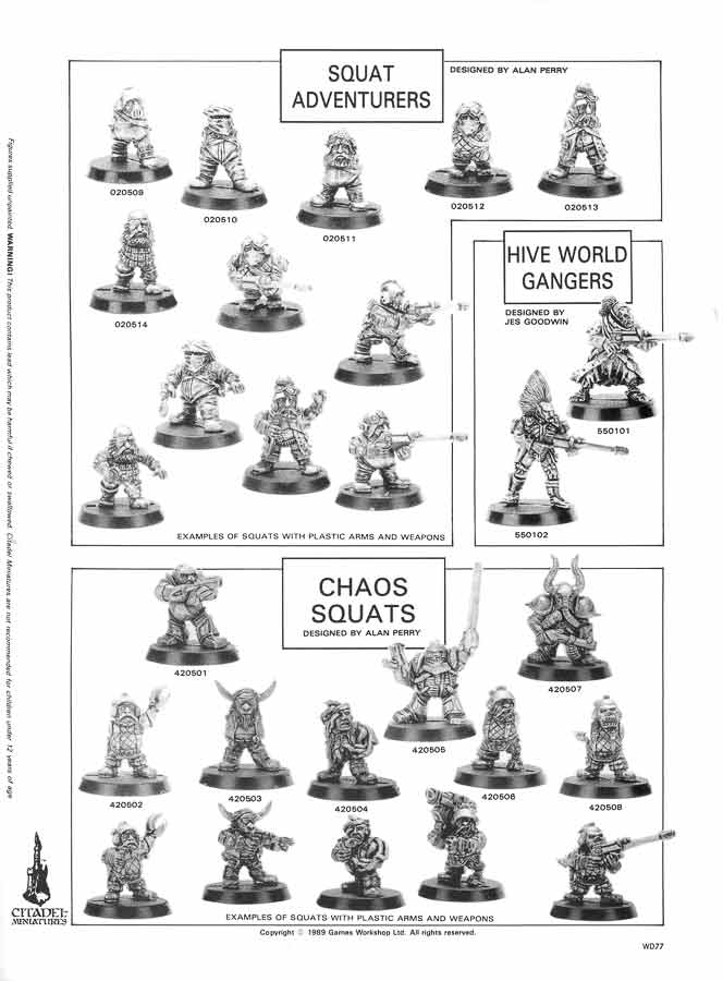 By the end of 1989 GW had sculpted and distributed about 150 metal Squat models, making Squats a fairly substantial range up there with Space Marines in terms of model numbers.