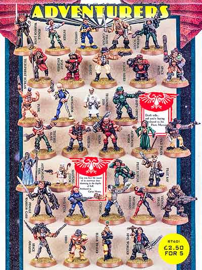 Part of the March 1987 Citadel Flyer. Note the lack of Space Marines and the assortment of Imperial Weirdos, including the first Custodes model.