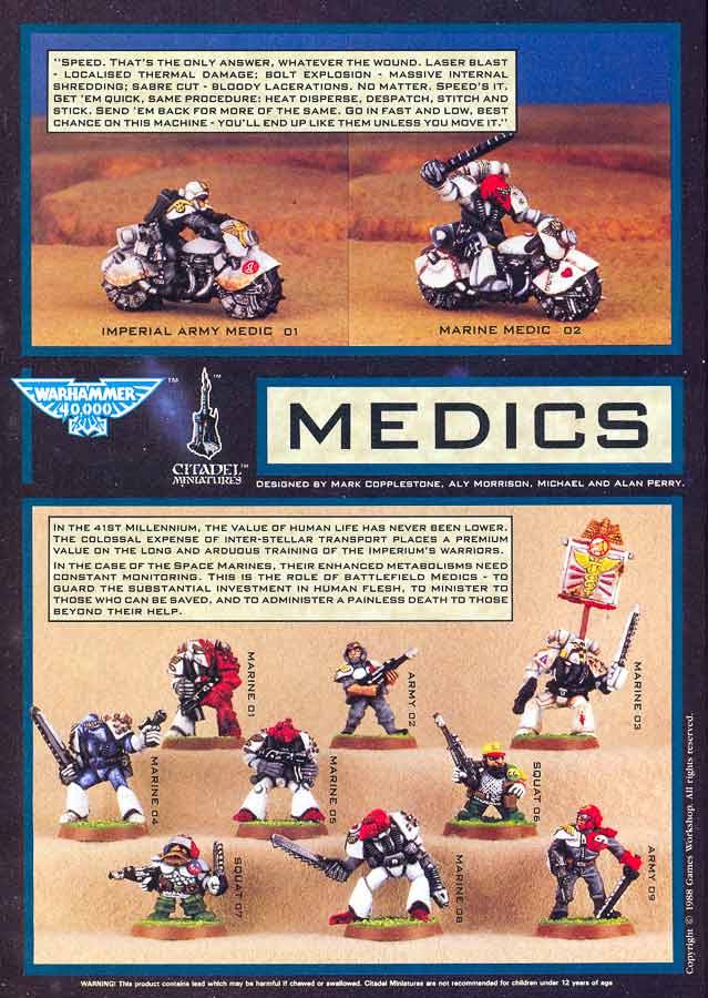 Medics (this involved releases for Space Marines and introduced Apothecaries, Imperial Guard and Squat Medics) and added two medics sculpts.