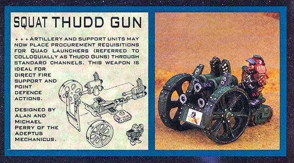This period (87-89) was the high watermark of Squat releases, with models coming out regularly and appearances in White Dwarf almost every month, even if just in the 'Eavy Metal section. From 1990 to 1993 Squats turned up sometimes in pictures in White Dwarf, but there were no 40k releases. As 40k cycled through attempts to fix the vehicle rules in Rogue Trader Squats were updated (and armour penetration rolls were introduced at this time, which lasted until they were scrapped in 8