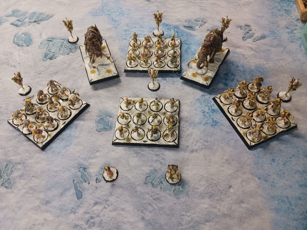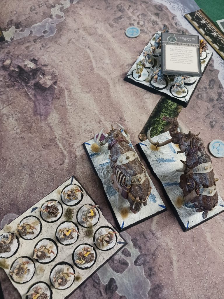 The first two games the Free Folk racked up the kill points but couldn’t secure a single one against the Baratheons. It probably would have been a better idea to go with the Mag Monster list to crack through the heavy armour of Baratheons, which heal like crazy thanks to Renly Loyalty boosts. Charging Volley and War Mammoths are not enough to break the lines it would seem.