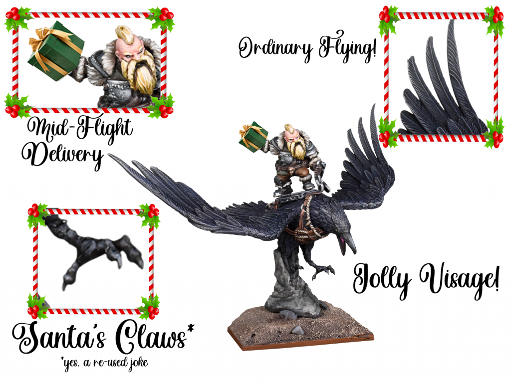 There are many modes of transport in Pannithor, all of them bearing qualities that resemble the typical sleigh that carries a certain maniacally jolly deity. In order to rank these scientifically and accurately, we have developed another peer-reviewed system known as GASY (patent-pending). Using these metrics, all methods of conveyance in Kings of War can be assessed for their holiday-based applicability.