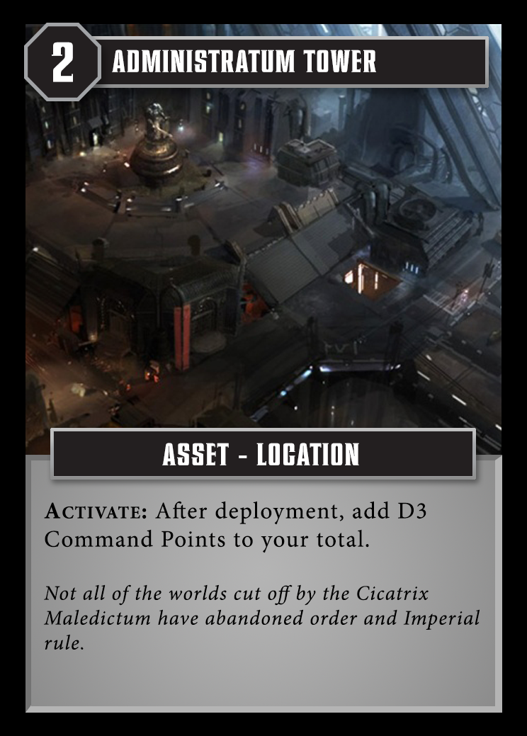 The Admin Tower was a Campaign Asset that players could win in a campaign event during round 1.