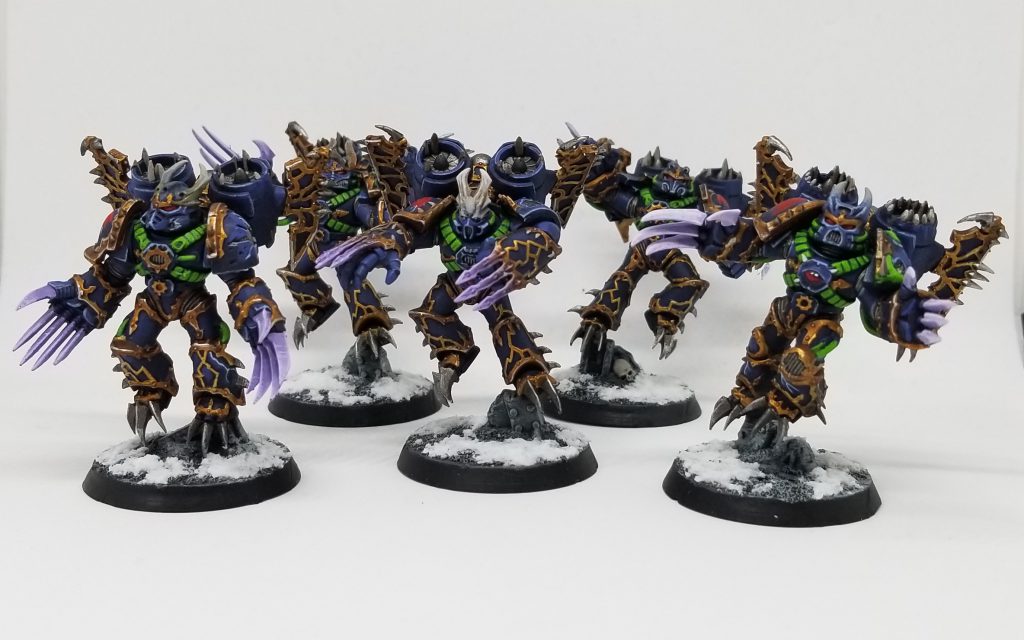 Valentine's Day Massacre RTT event run by Shane Watts in February. I painted a squad of Warp Talons and finished off my Obliterators in order to get ready for that event. I'm pretty happy with how both turned out, and the conversion on the Obliterator makes him stand out just enough from the other two. That there are only two Obliterator models for a 3-model unit is criminal, GW.