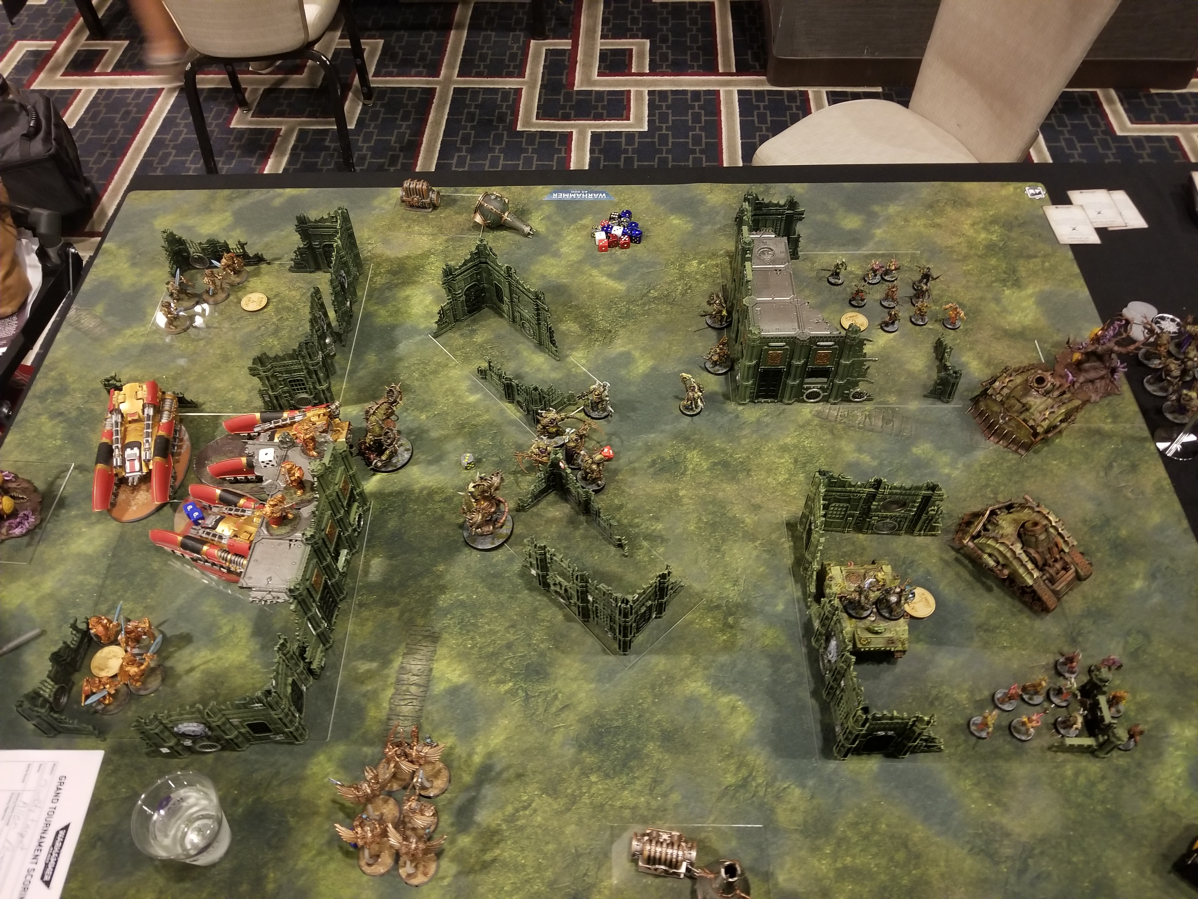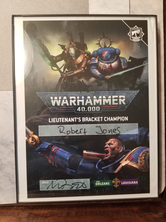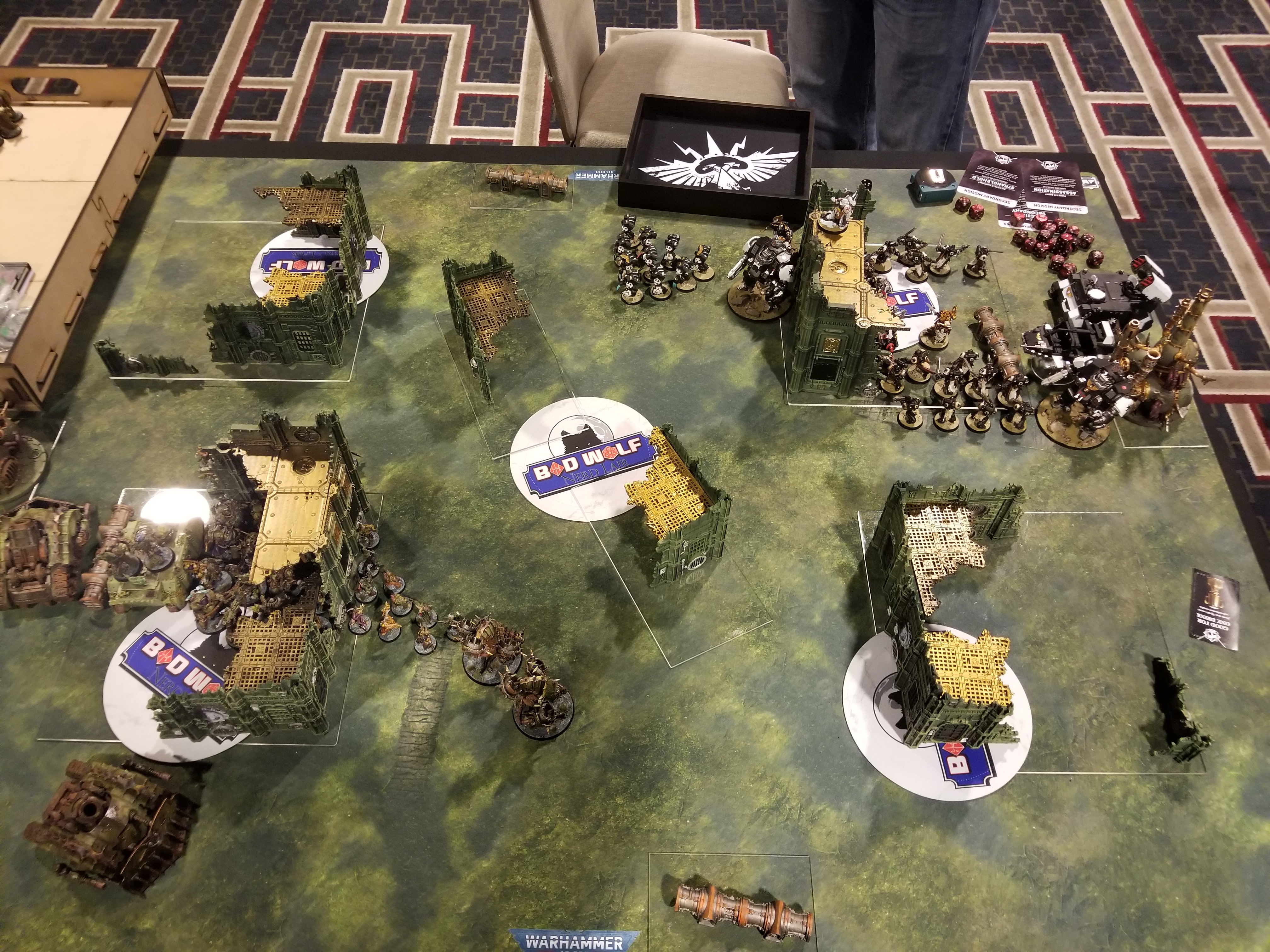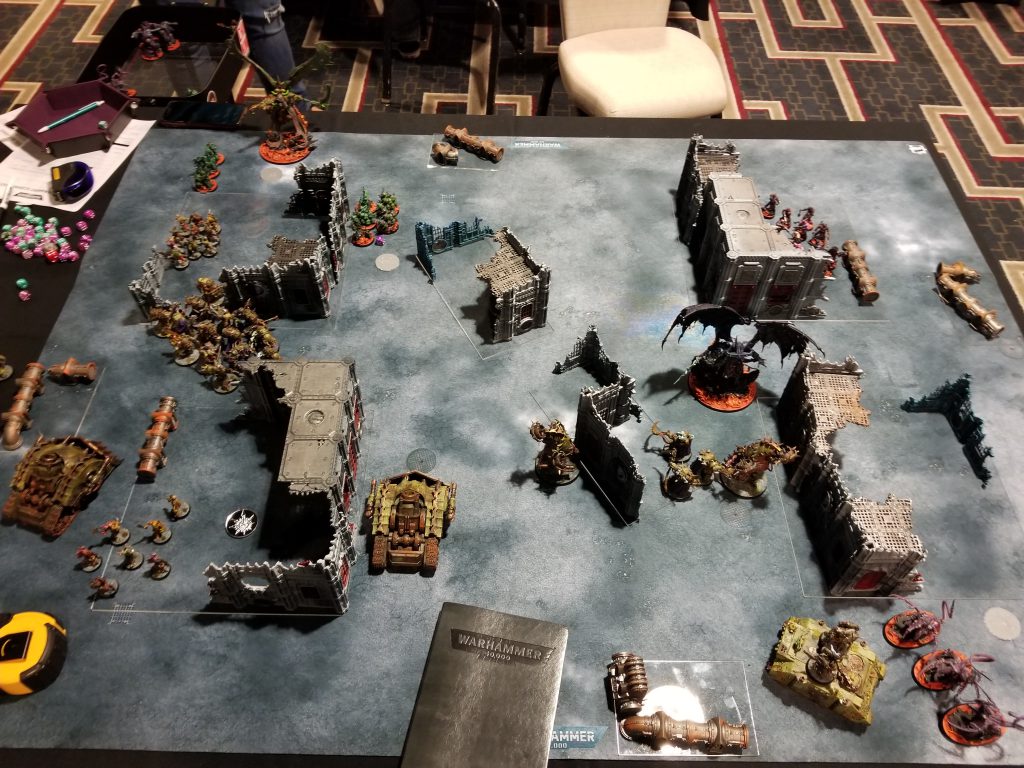 Grand Master in Nemesis Dreadknight [12 PL, 245pts]: 1: Gate of Infinity, 2: Empyric Amplification, 3: Unyielding Anvil, Brotherhood Psyker Power, Dreadfist, Dreadknight teleporter [10pts], Gatling Psilencer [20pts], Grand Master Chapter, Heavy Psycannon [20pts], Nemesis Greatsword [15pts], Omen of Incursion [2 PL, 30pts], Sigil of Exigence, Warlord
