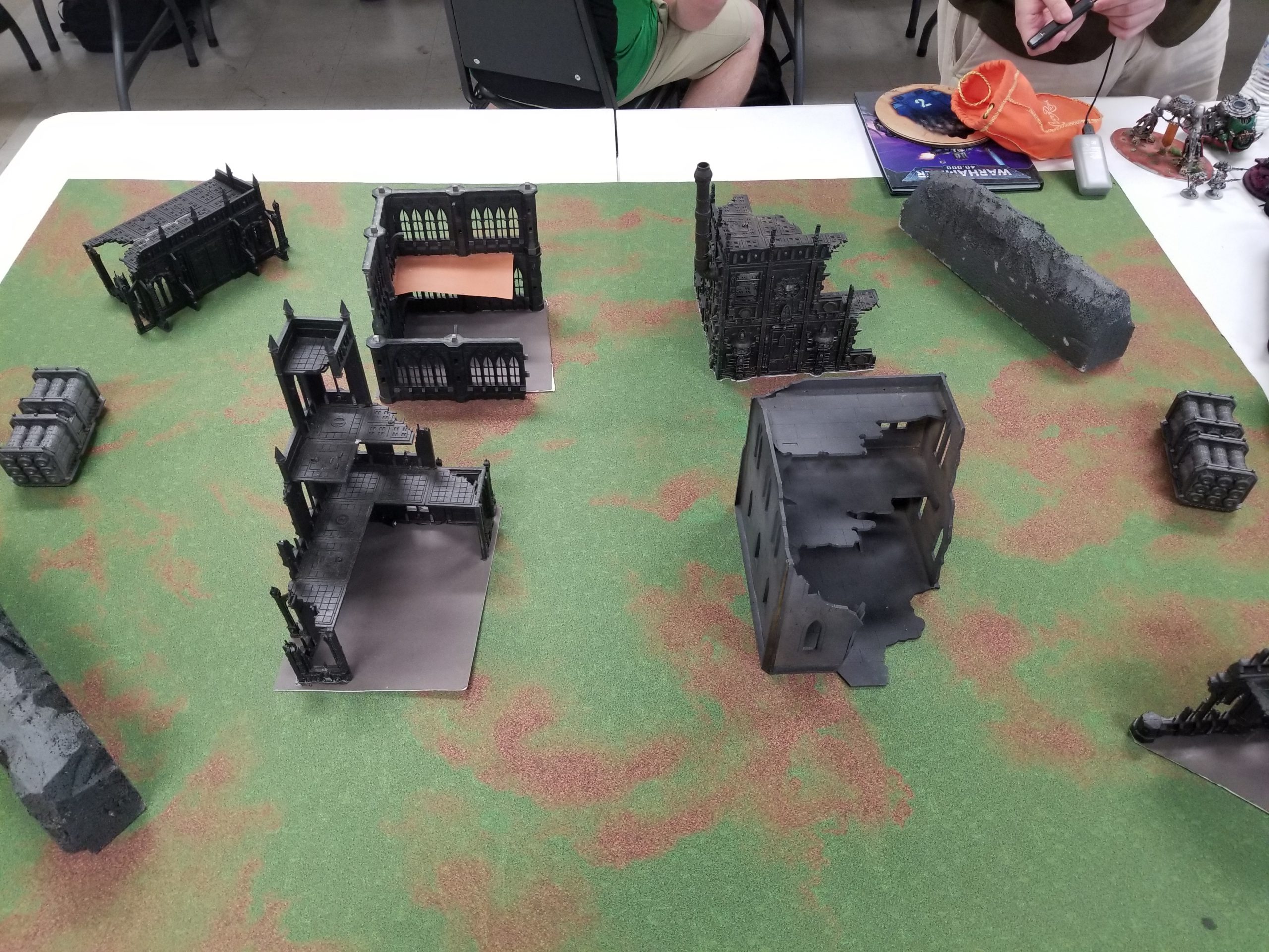 Lessons Learned: Honestly I'm still bitter about the terrain. If you're going to have bad tables, why make them top tables. What's even worse is that McDade and his opponent didn't even play their game - there was some kind of weird pissing match/concession situation going on over there that I didn't dig for details on - so there was a table with legitimately good terrain that just went unused. Meanwhile I got to play with the ruin that a had a floor made from construction paper.