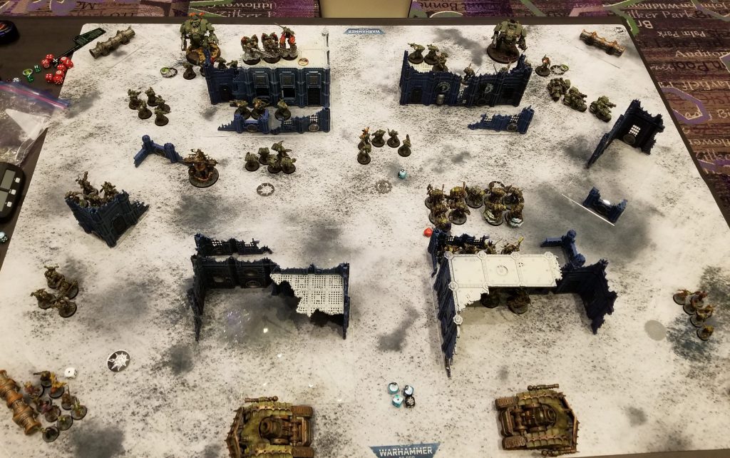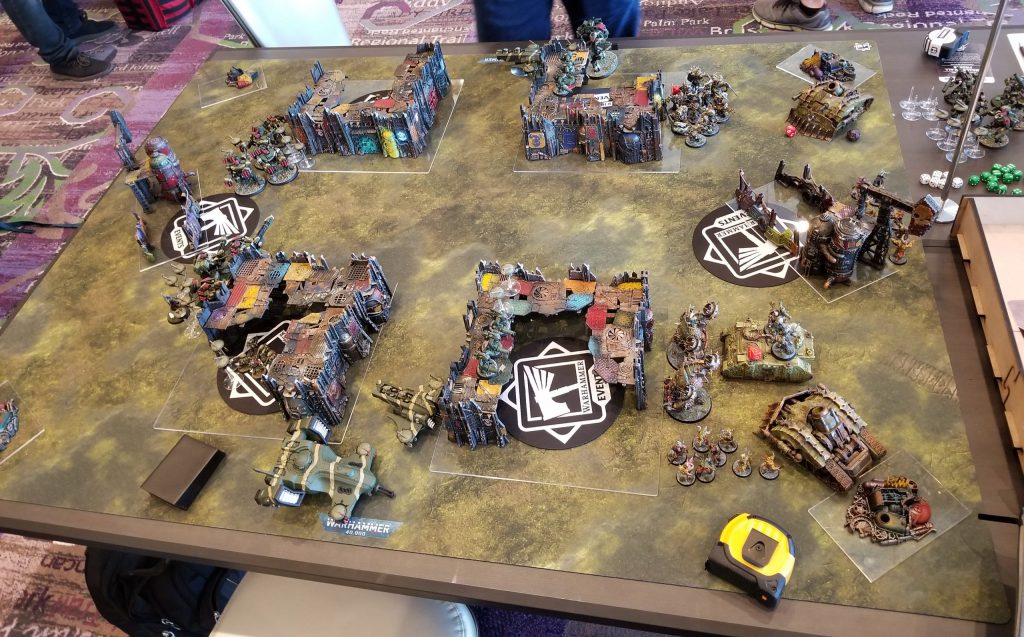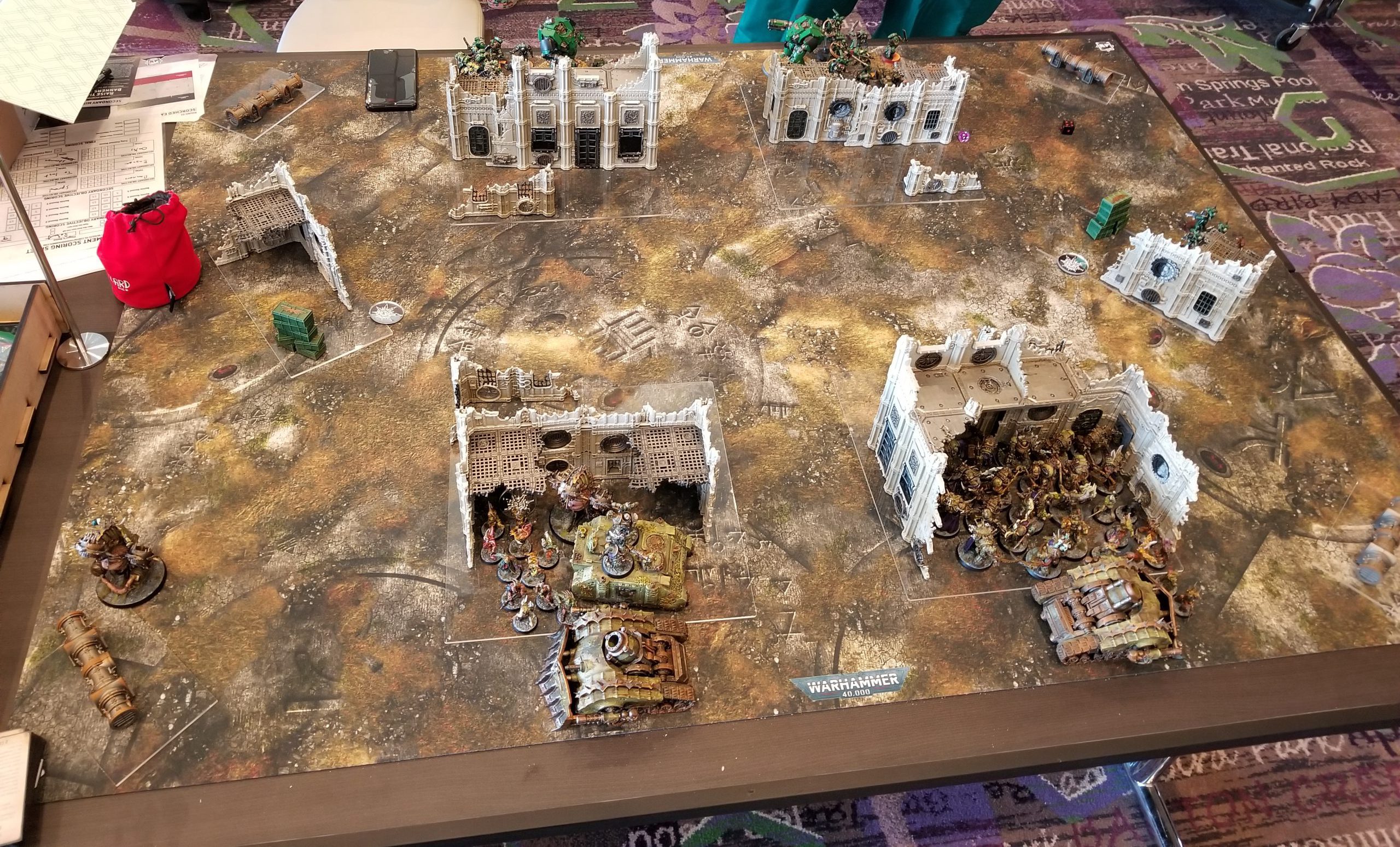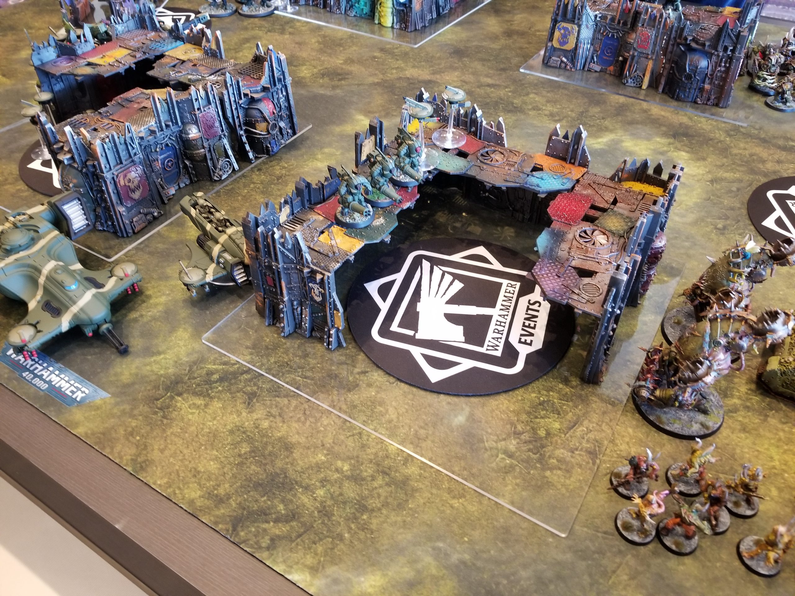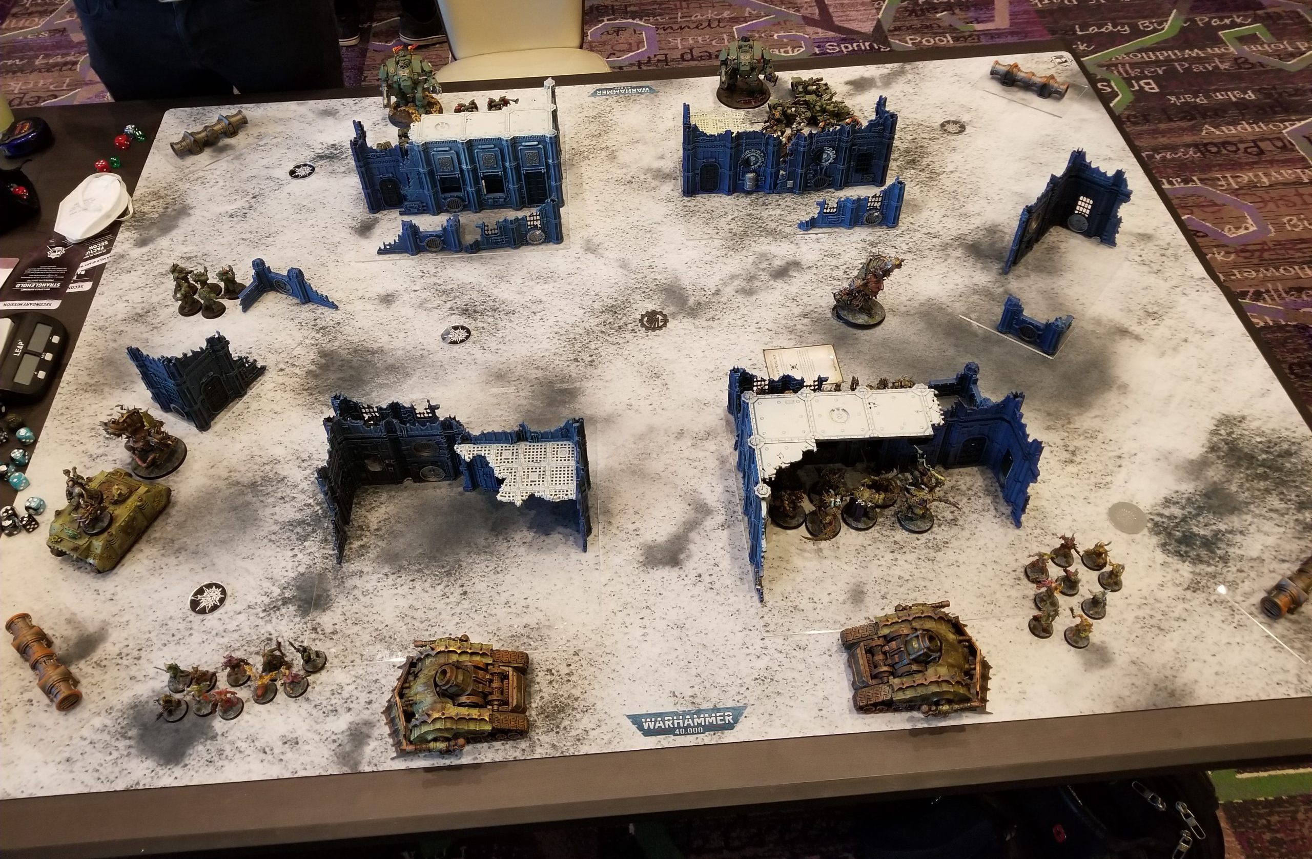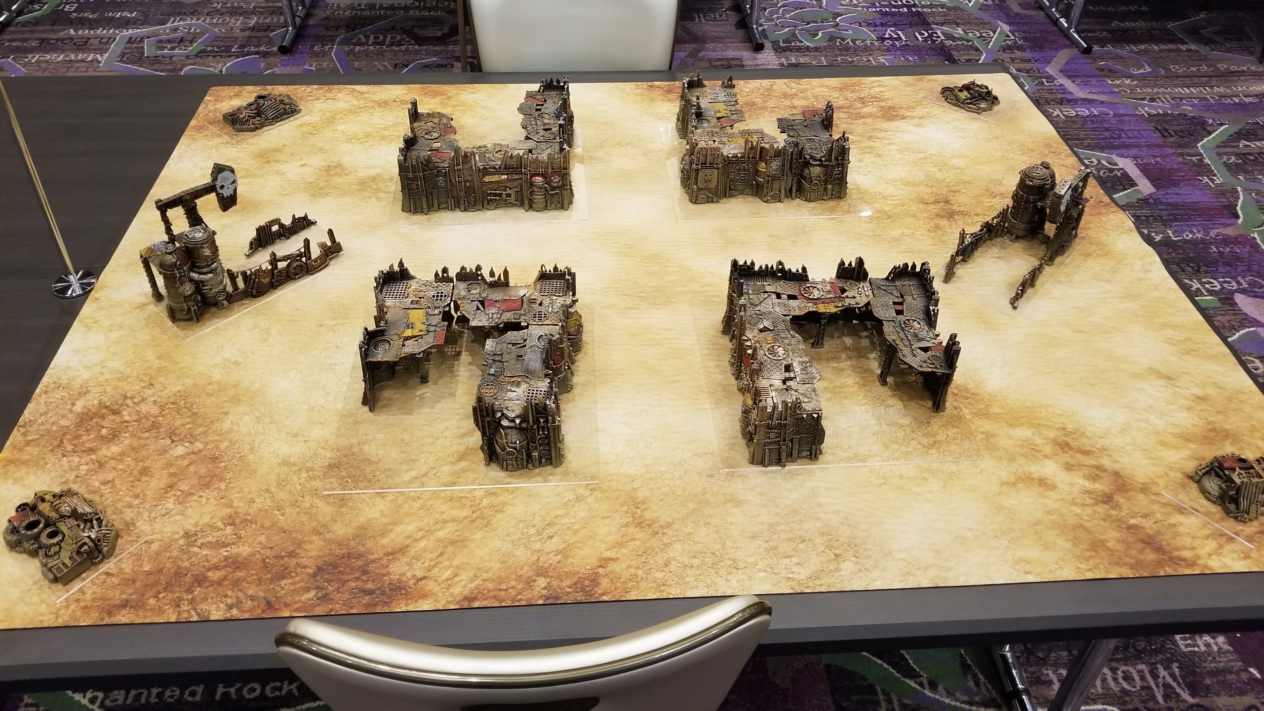 The new terrain option at Austin. It's an even more expensive setup than the standard layout, since it takes three boxes of Chalnath to make one table.