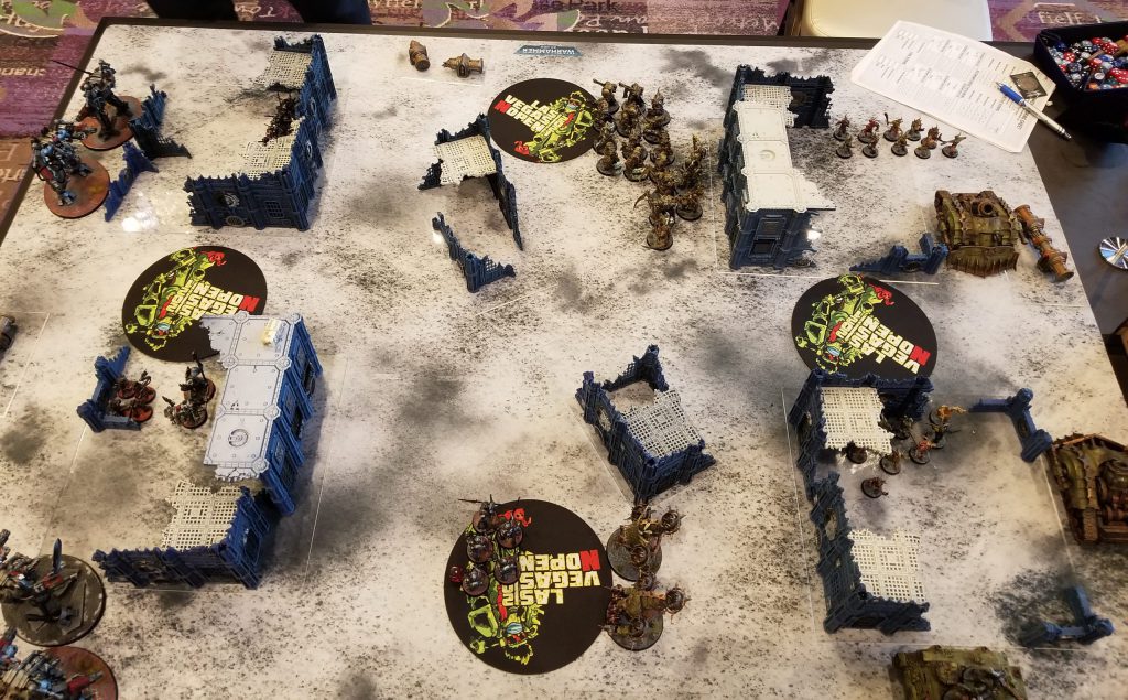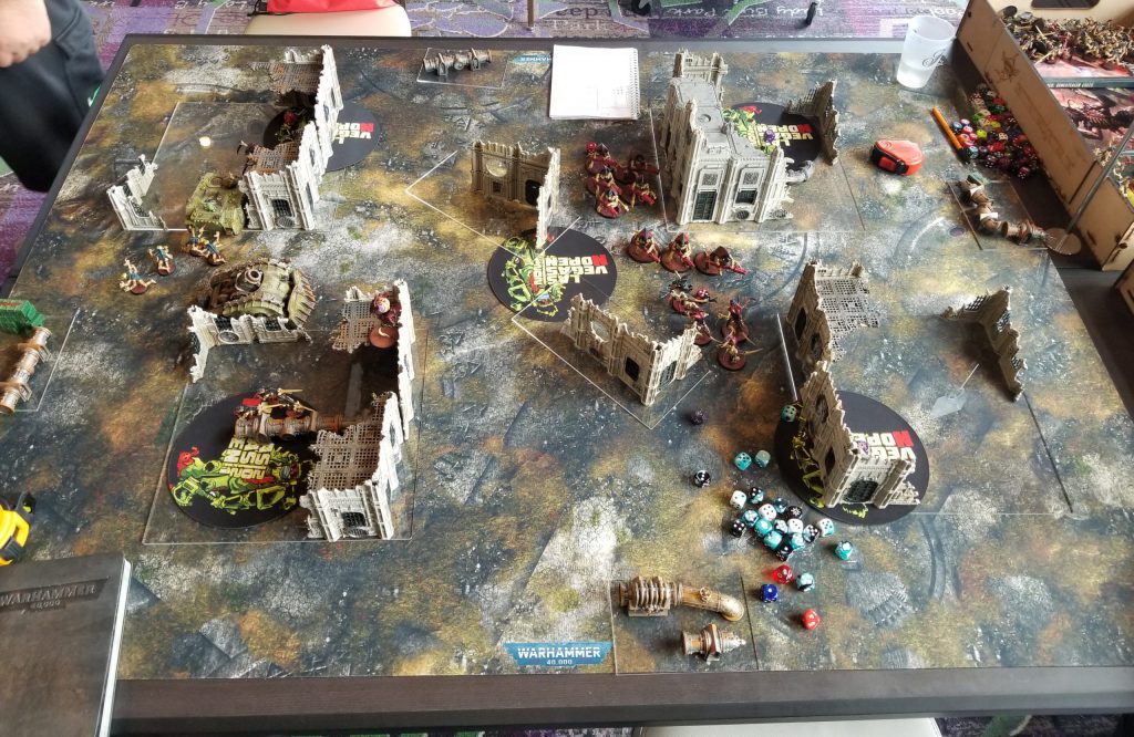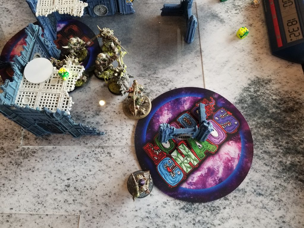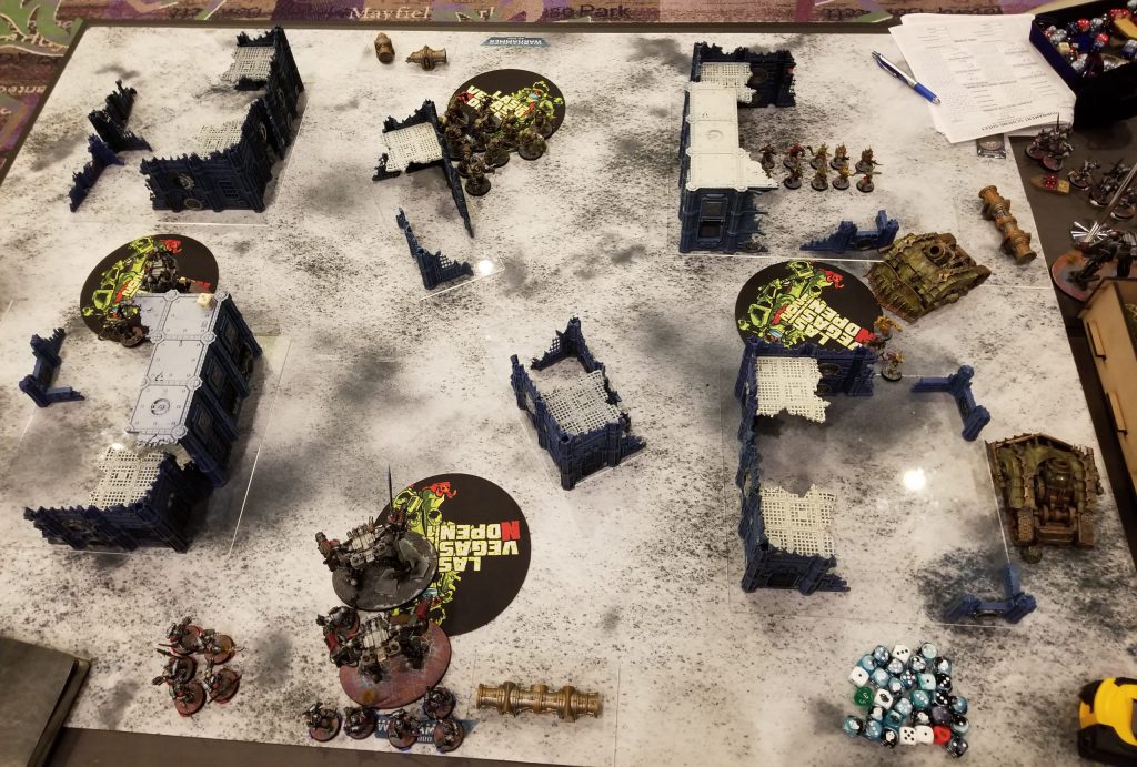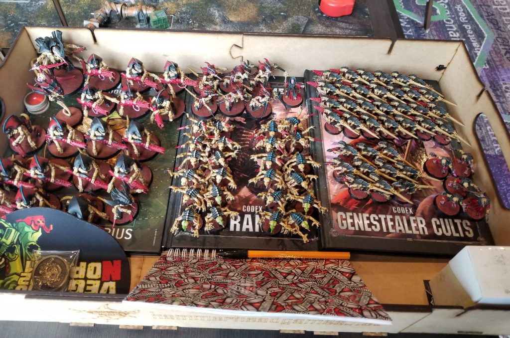 Grand Master in Nemesis Dreadknight [11 PL, 230pts]: 1: Gate of Infinity, 3: Sanctuary, Dreadfist, Dreadknight teleporter, Gatling Psilencer, Gem of Inoktu, Heavy Psycannon, Nemesis Greatsword, Sigil of Exigence
