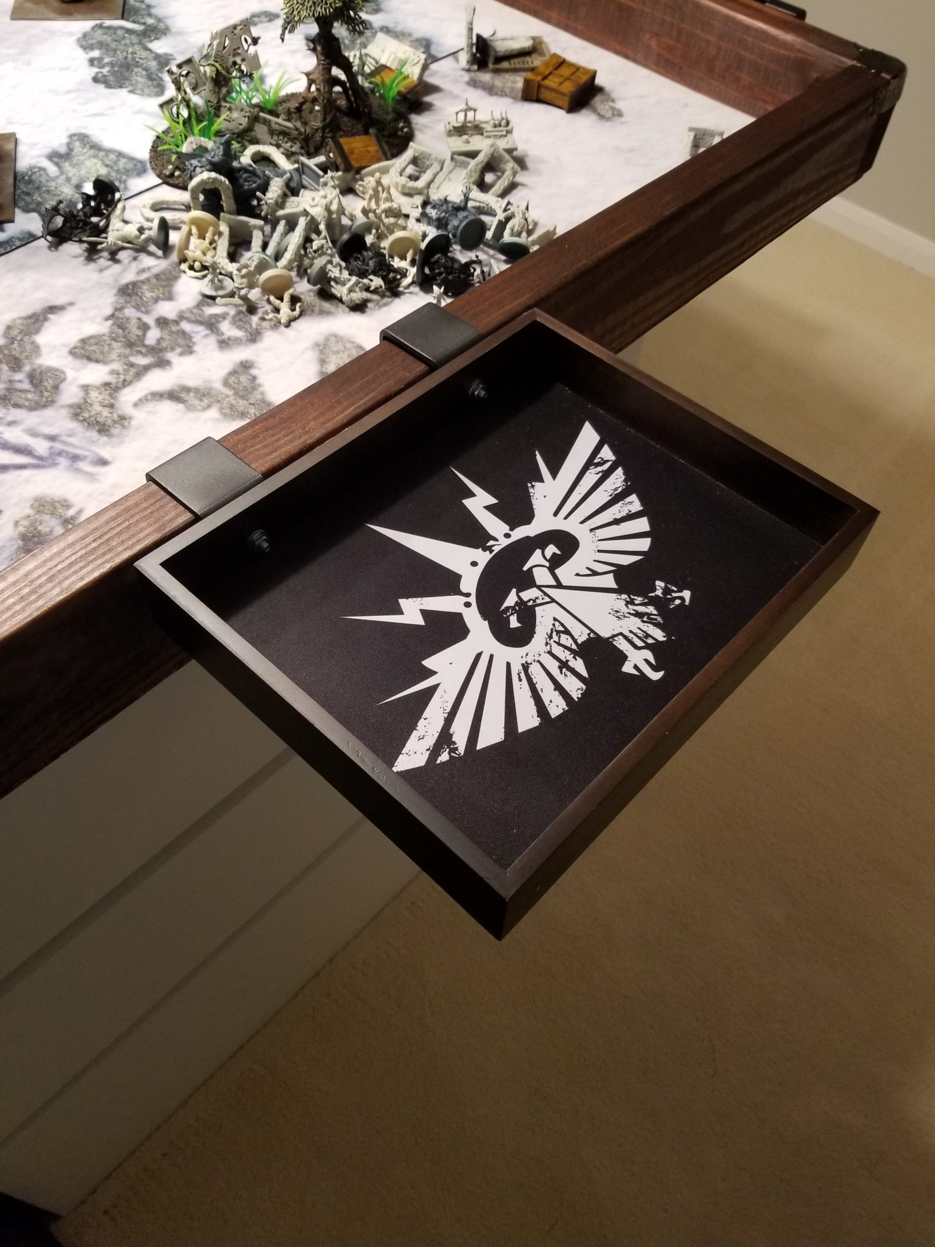 do, but it'd be in the spot on the sidebar where people put their armies. So instead I've decided to make life difficult on myself by mounting the tray on brackets so I can hang it off the side of my table.