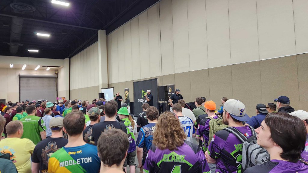 The event is huge, and the venue for it is great - it's large but not too loud, and there's a ton of room for tables and pairings. We're on table #1 in the first round, which means we'd get to play on stream... or we would, except that Art of War have apparently Big Time'd us and swapped us over to Table 14. This is a pretty lame move, in my opinion, but I'm also not super upset about not playing on stream.