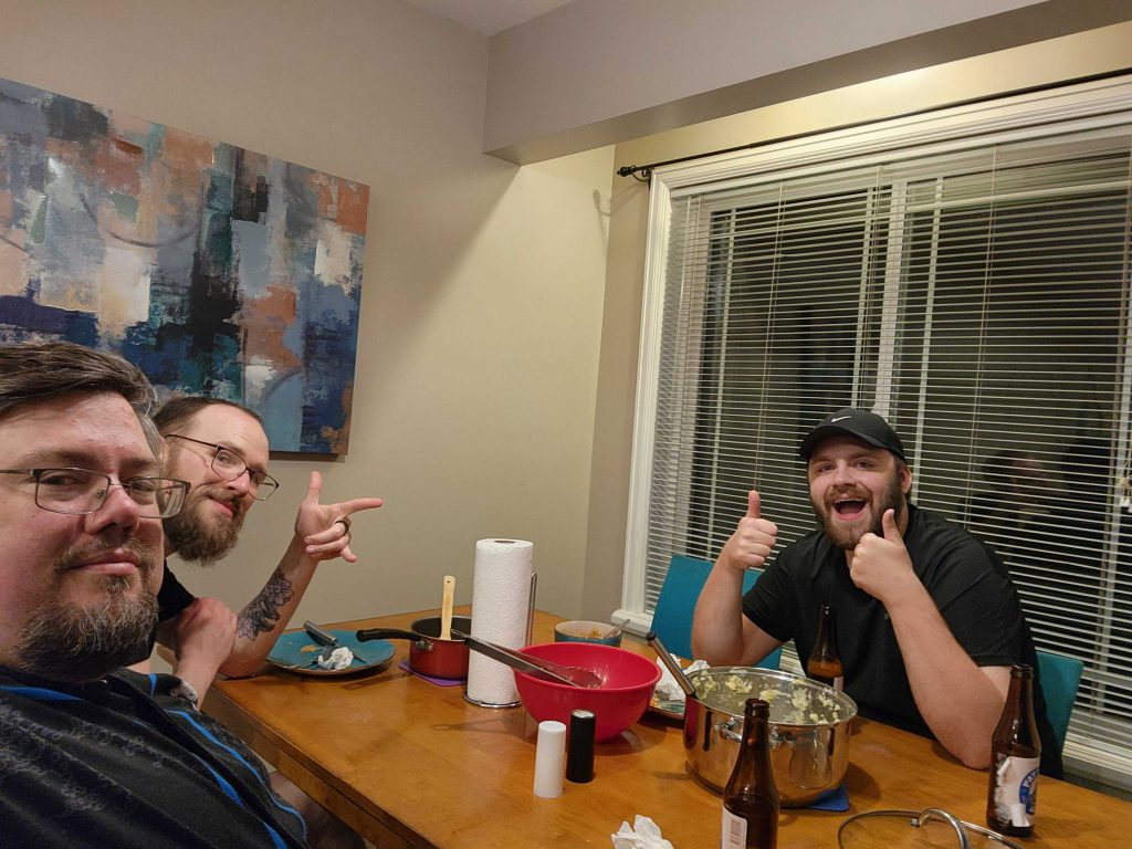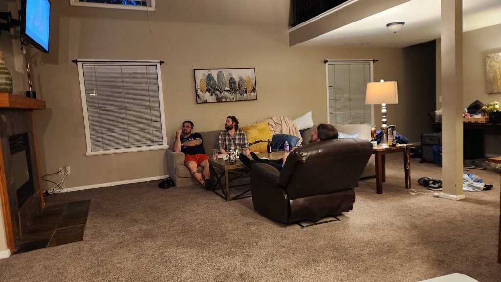 We also decide it's time to make use of the hot tub. Me, Wallace, Norman, and Goatboy hop in and lemme tell you: Bringing a swimsuit was the correct move. Hot tub beers was absolutely what I needed after that weekend of games. Exactly what my back and legs needed, though I'll admit I was completely drained after we got out - hot tubs have a tendency to do that.