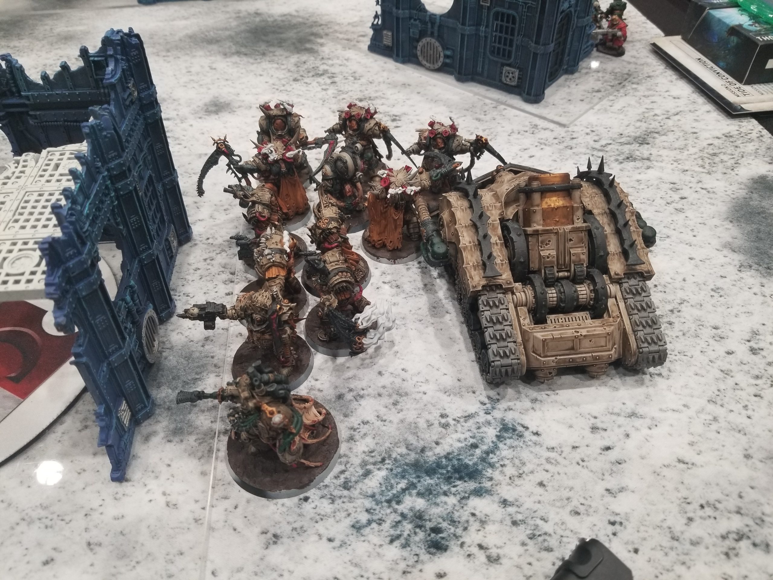 In terms of the list - the Heldrake is coming out. He never did any of the things I wanted him to do, instead just being kind of annoying - but not so much so as to actually inhibit my opponents, thanks to being an AIRCRAFT they can walk away from - and mostly just being lucky enough to explode at good times. Instead I'm going to replace him in the short term with a Mutalith Vortex Beast - mostly because I have one painted - and add a disc to Ahriman and another Chaos Spawn. I may double up one unit of Spawn or even put them as a 3-of so they can score Engage on their own, but right now they do pretty fine as individual models for doing mission actions and harassing enemy units. I may also look at adding an Icon of Flame to one unit of Rubrics to get a 14th cabal point, since 13 is every now and then not quite enough - I'd really like to have the 5-5-4 option, though the Mutalith can help me get there too.
