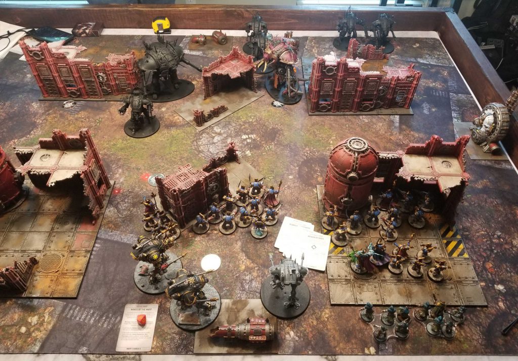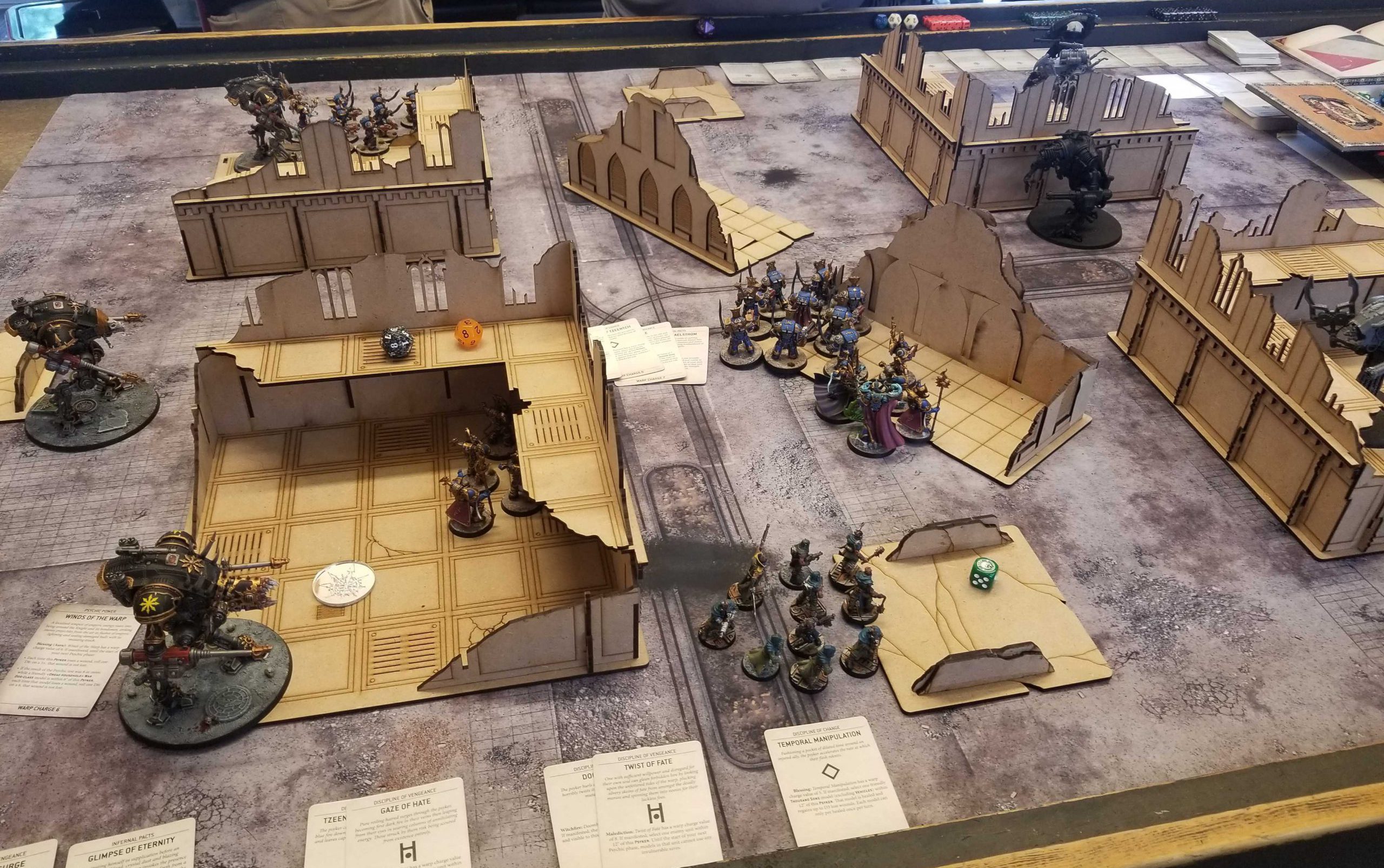 This will be my first game with Knights, and because of that I'm keeping my list pretty simple. 2 big Knights with a bunch of little guys to support, under House Herpetrax to make them all more durable. Ideally, I want to push hard into the middle of the board with the hard-to-kill Abominant and then use the Dessecrator be a second wave after it pops a vehicle with The Diamonas relic gun. My understanding is Knights work best when they are playing a brutal attrition game, but Rob's Thousand Sons are no slouches when they come to attrition. Plus, they have plenty of mortal wounds in the psychic phase to cause me trouble.