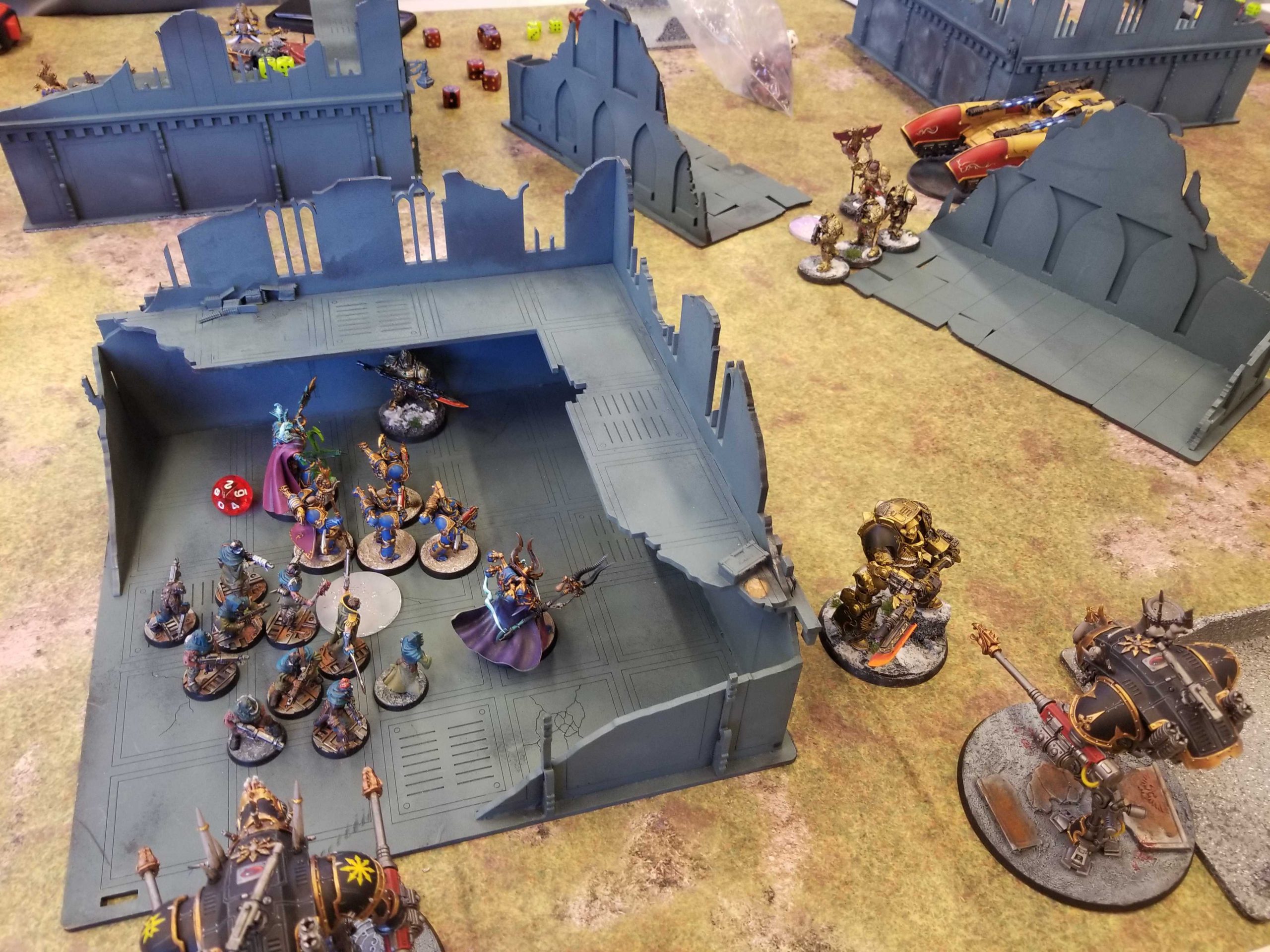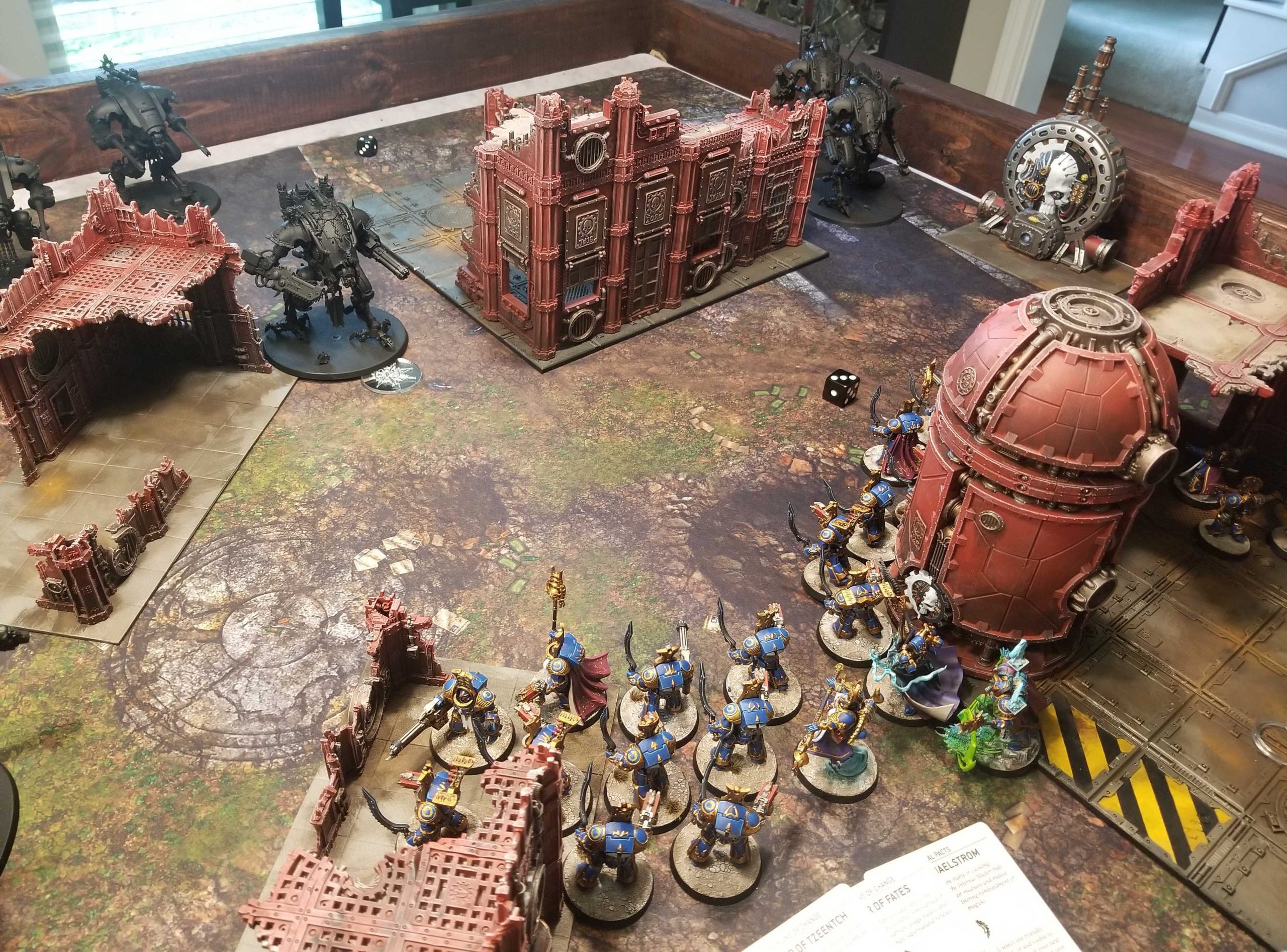 Another game against a regular sparring partner, Erik brought a relatively standard webway gate-equipped Hail of Doom list. The mission was Secure Missing Artefacts, and we played a very tight, close game on this one. I made a bit of a mistake taking Assassinate in this one, only pulling 6 points off it, and Erik played a cagey game on his end, trying to keep up scoring for Engage on All Fronts. Erik had to leave early when we were sitting on an 81-82 score with the game potentially going either way, so we called it a tie.