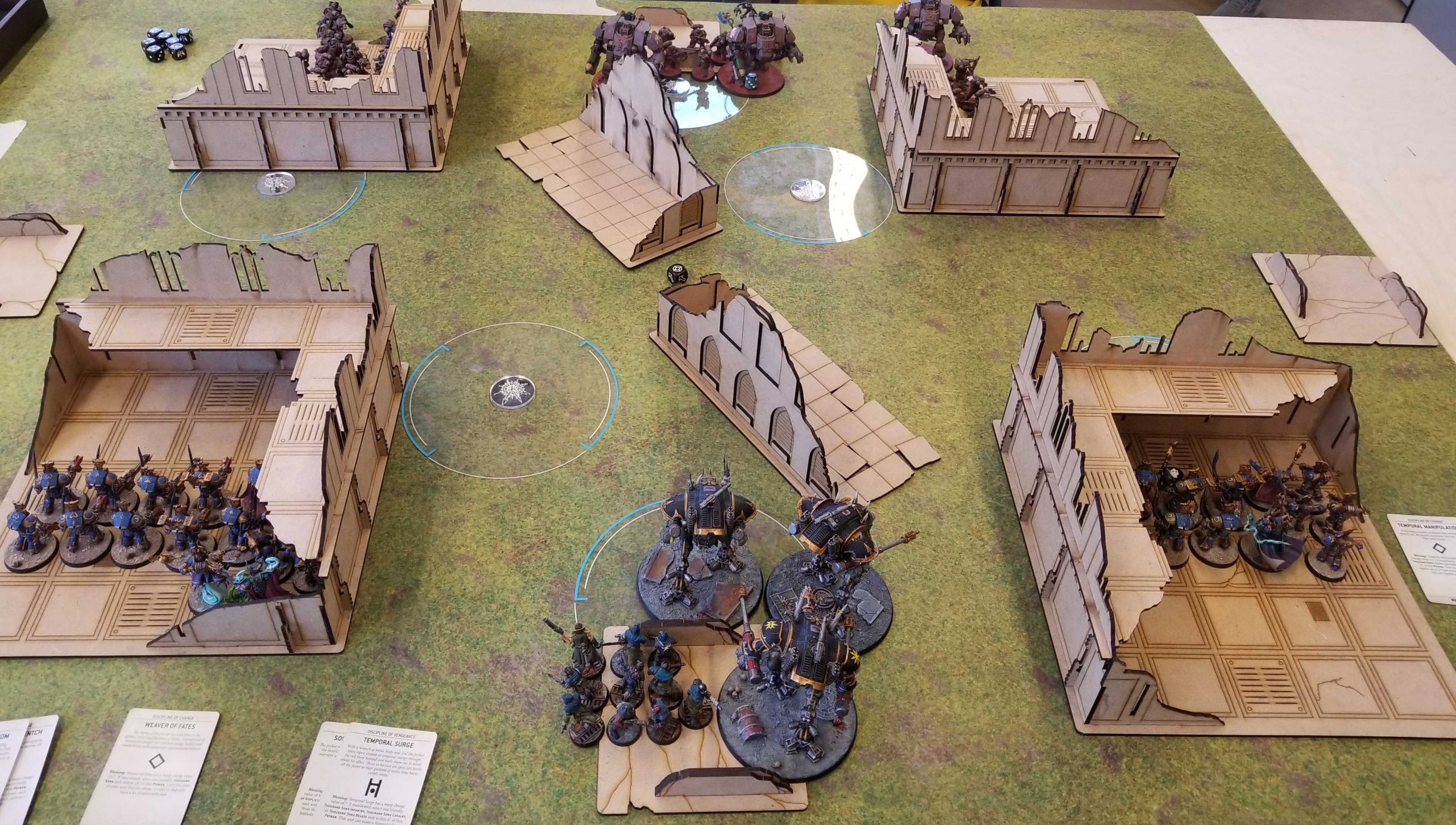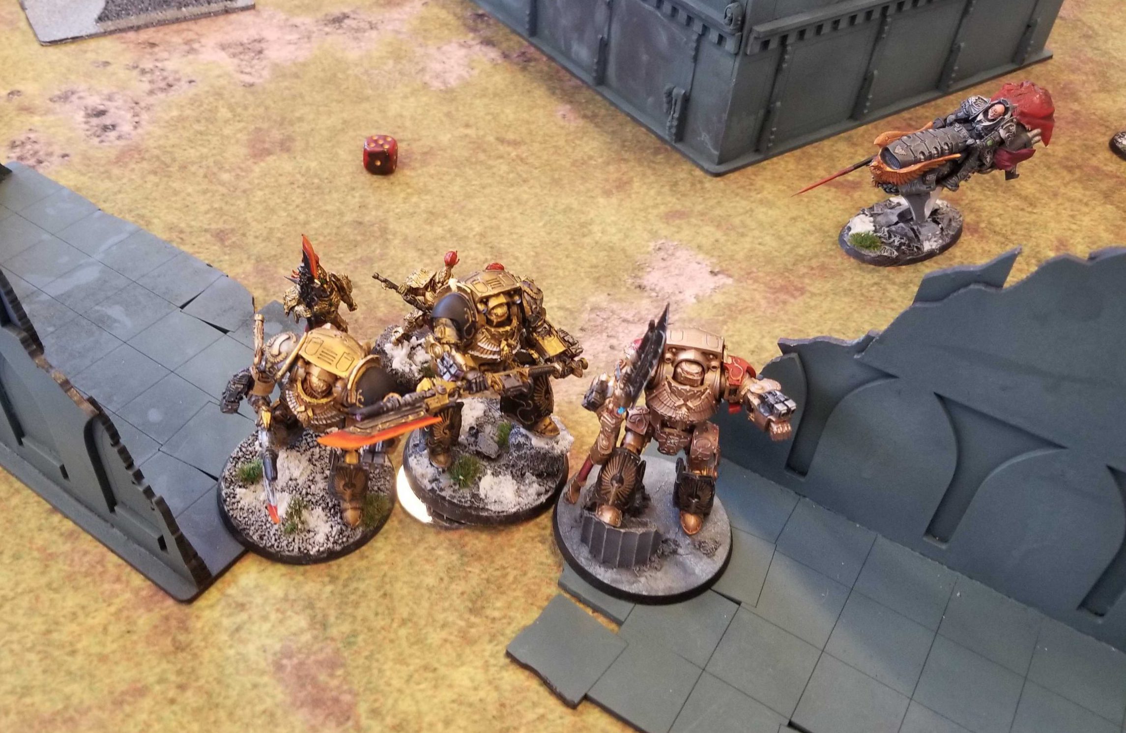 Well it was fate I'd run into Carmine. Or just really, really likely we'd both end up going 2-0. Unfortunately for me, this is a really bad mission to face his Custodes on - it puts us only 18" apart, and that further exacerbates that Carmine has built his list expressly to kill terminators, with three Achillus Contemptors that can toss out half a dozen 3 damage shots.