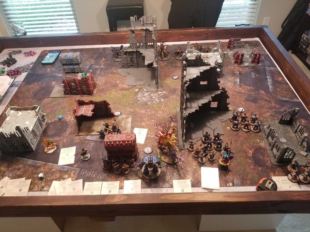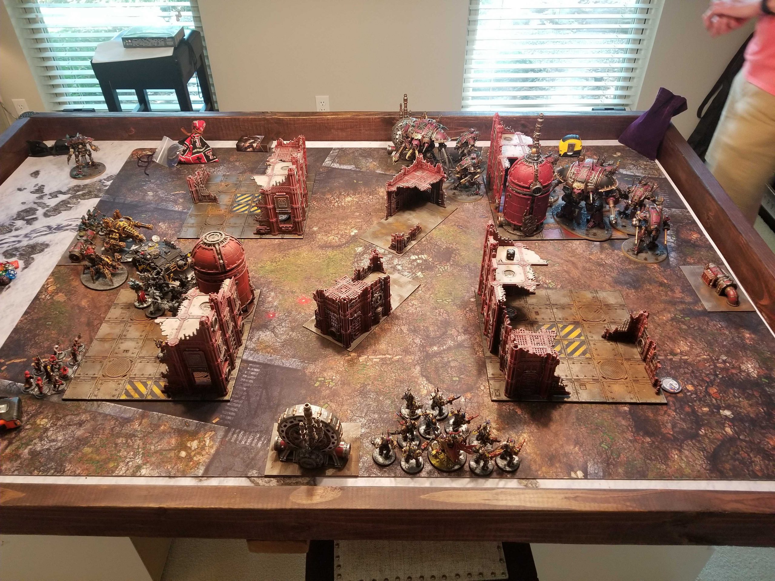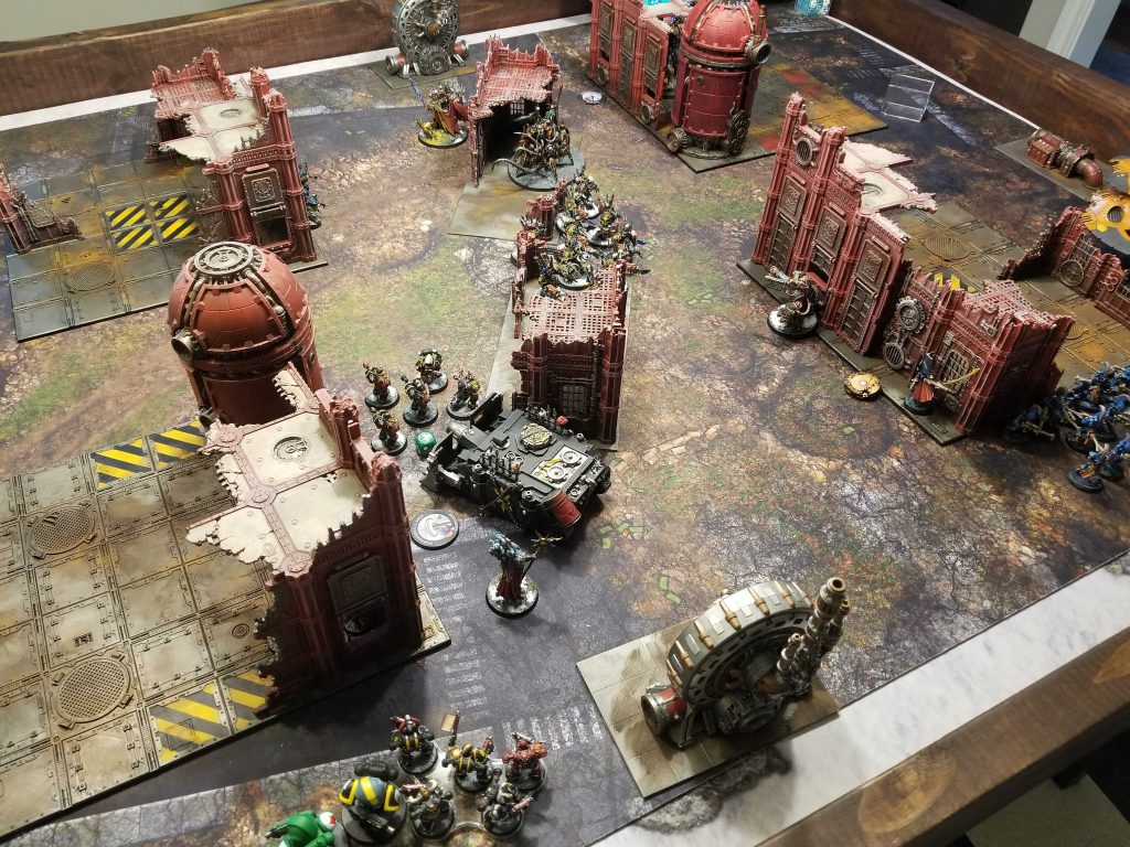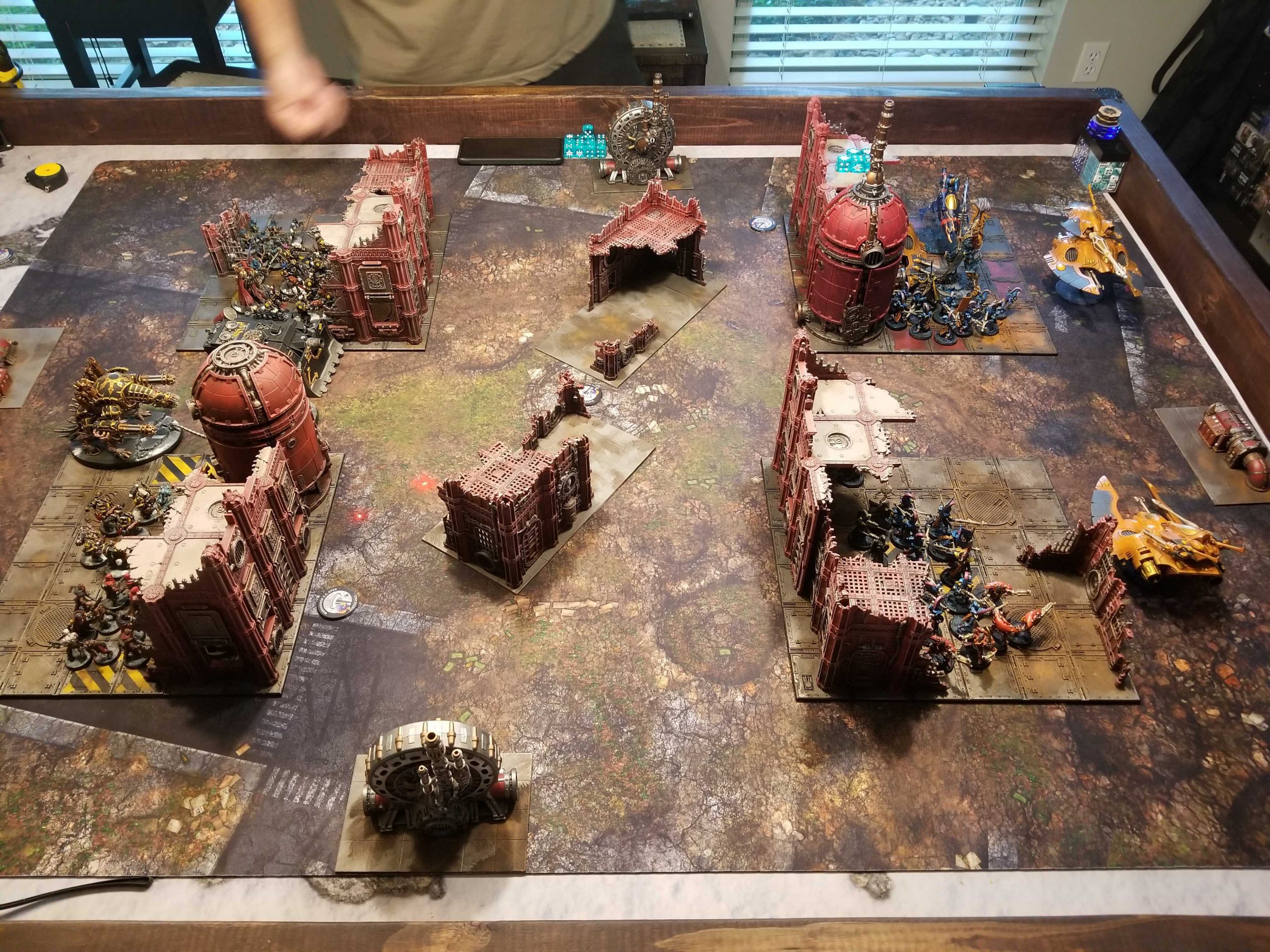 So I got in another game against Dan's Chaos Knights. Dan's usually good for the occasional weekday game and that's super helpful. I even offered to feed the guy. This time around we were playing Recover the Relics and I won the first turn roll-off. I then proceeded to try and tell Dan he could go first anyways, but he