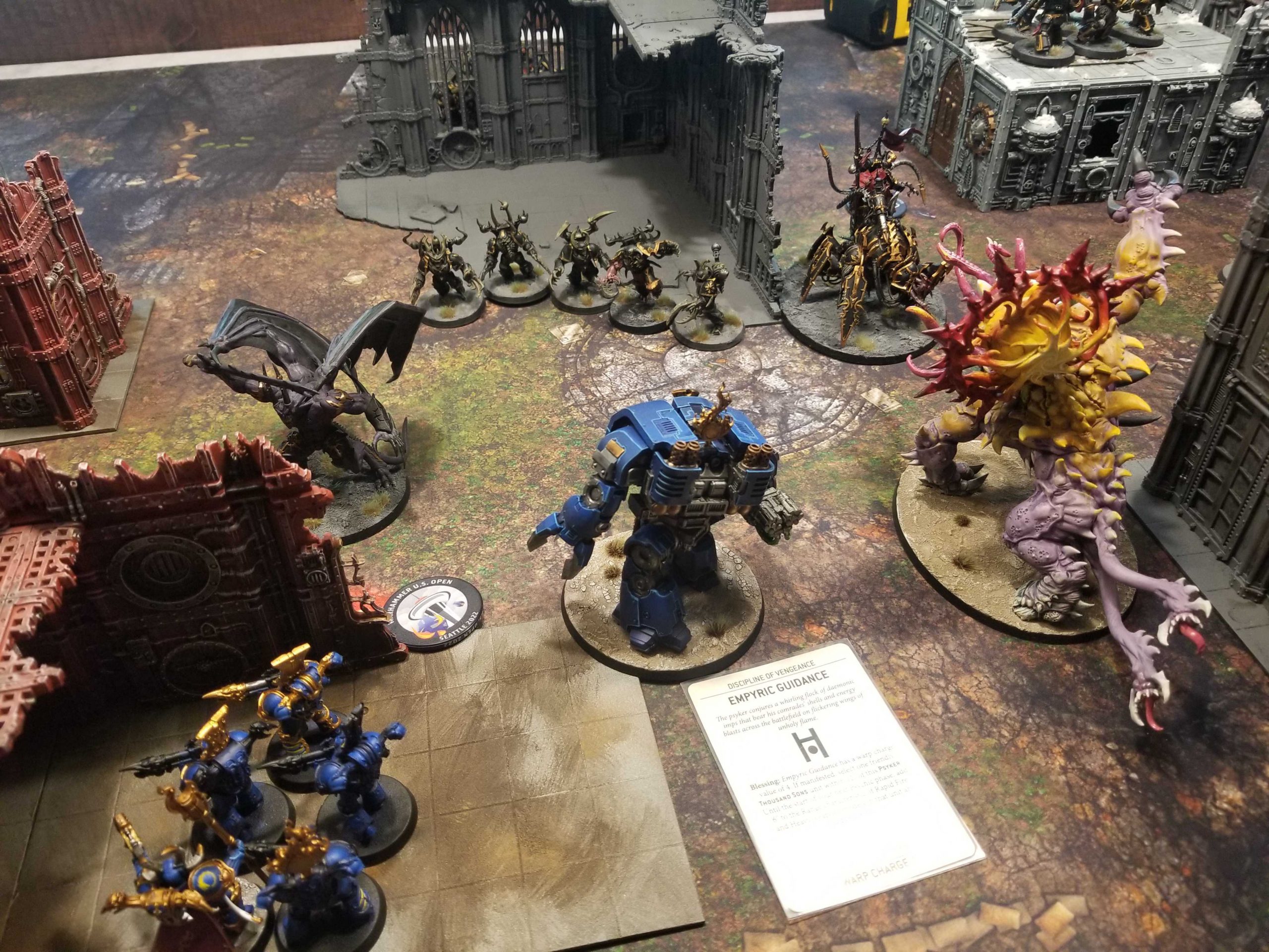 Russell played a hell of a game and I learned some extremely valuable lessons from him, particularly as it relates to terrain and player-placed terrain. I'm still unconvinced that the Black Legion aren't hamstrung by secondary choices - 89 feels as close to his cap as he could get for that mission, and that's not good - but Russell's a great player and I won't be shocked if he finishes in the top 4 at the Lone Star Open. I'm eager to get another game in against him in the future.