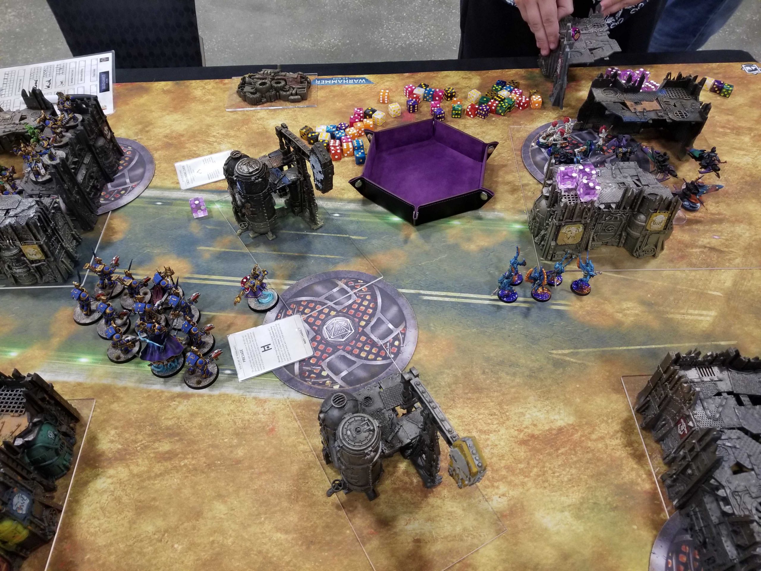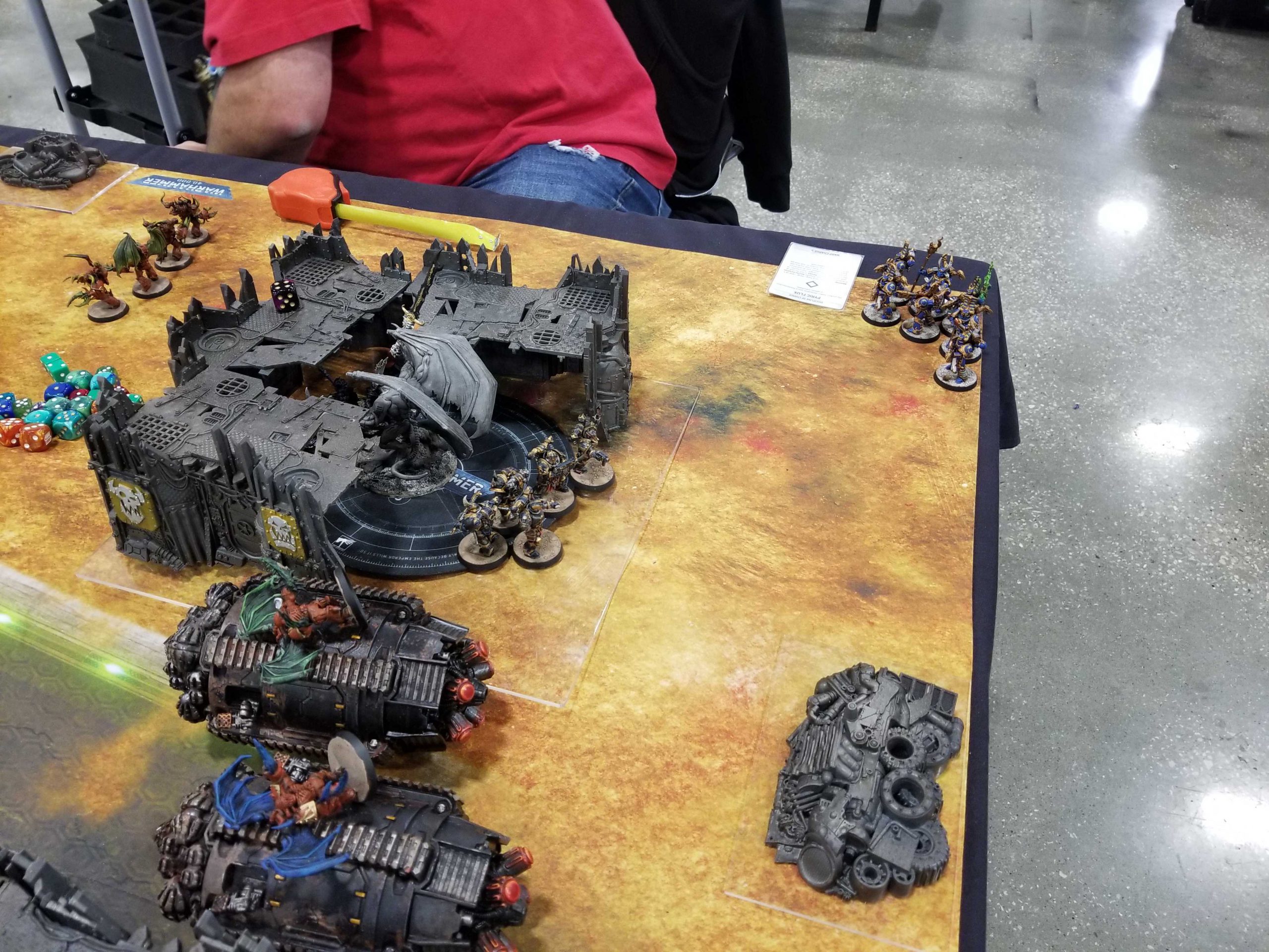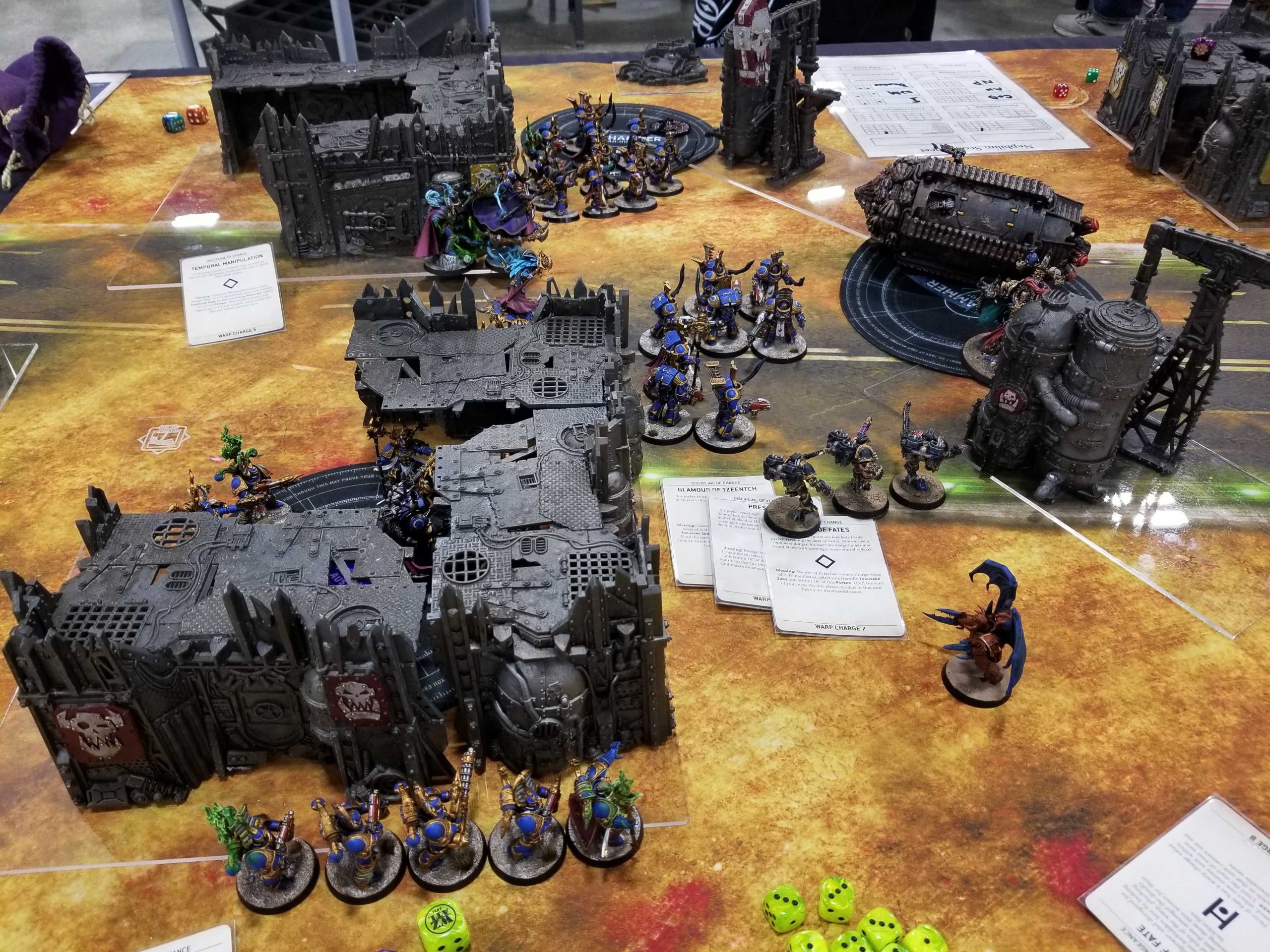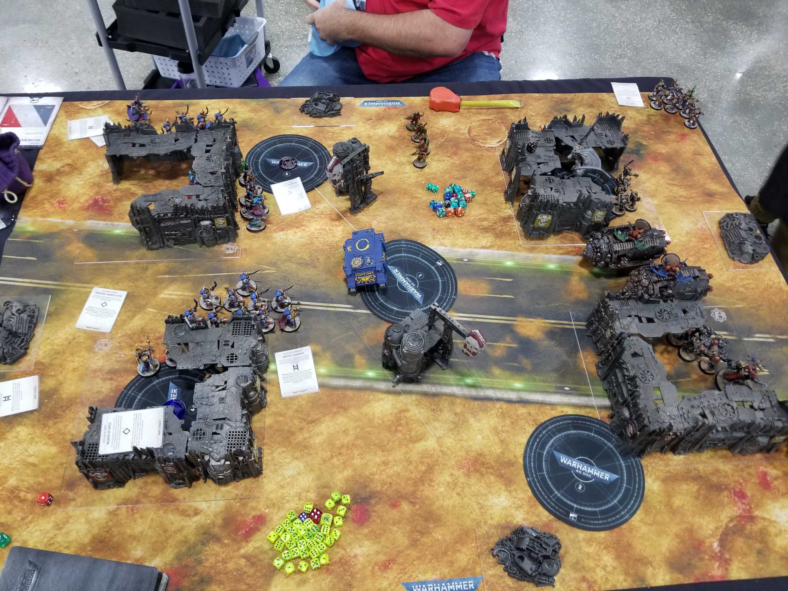 I think the joke from the weekend was there was no way I had this many 3-wound models in an army full of characters and other fun things. Still it all fit per the army building programs out there and fulfilled my goal of being a very aggressive army. Thankfully I didn’t hit my “problem” match up until after I got to the top 16 with Mani and his massive amount of flamers mixed with Mortal wounds. I think he killed almost 19 models in one turn of the game due to very high psychic rolls, damage from bolters, and just his armies desire to murder all my gross friends.