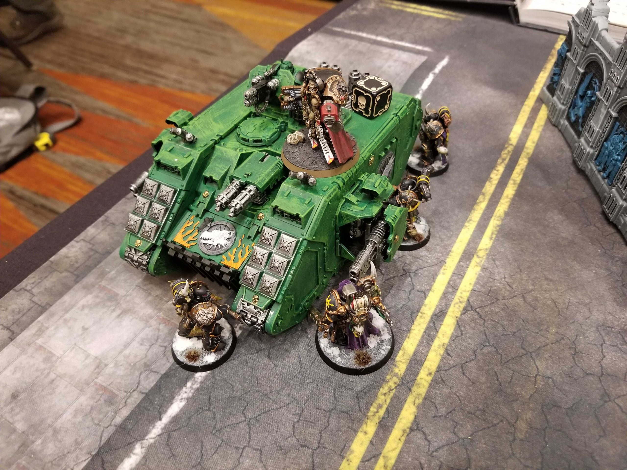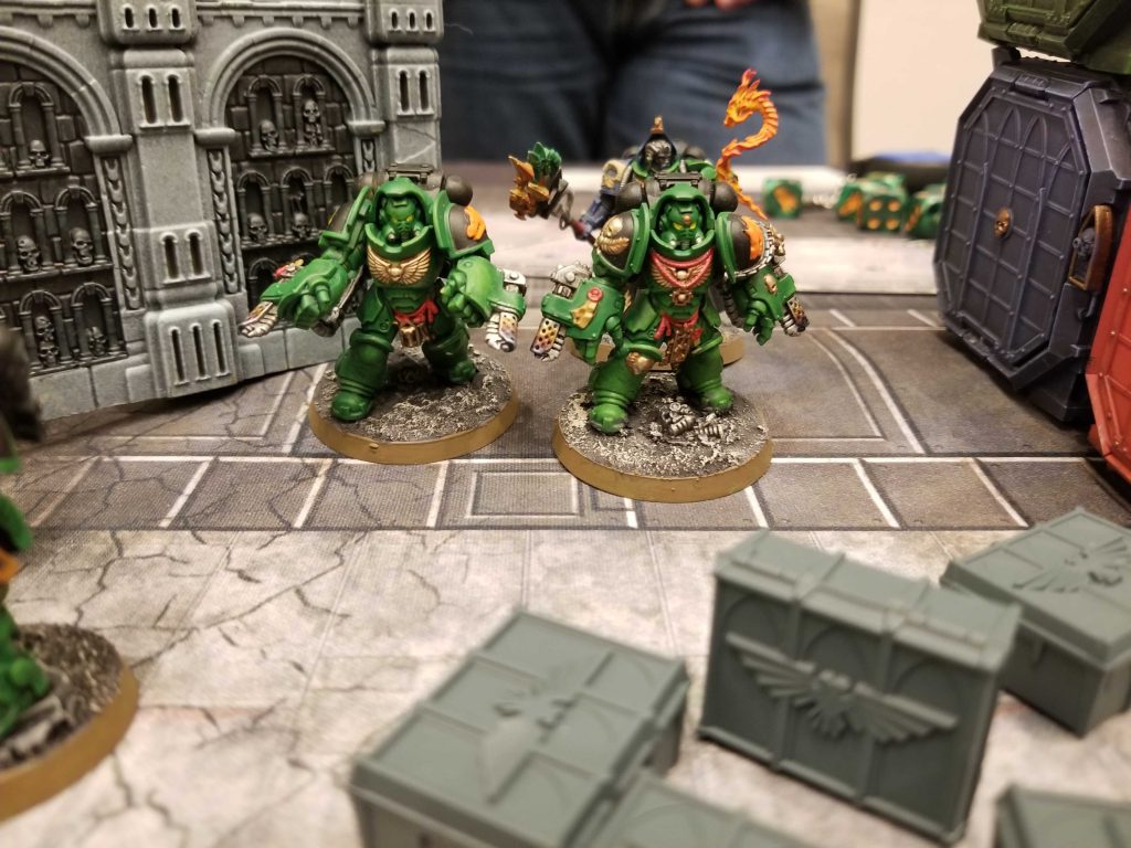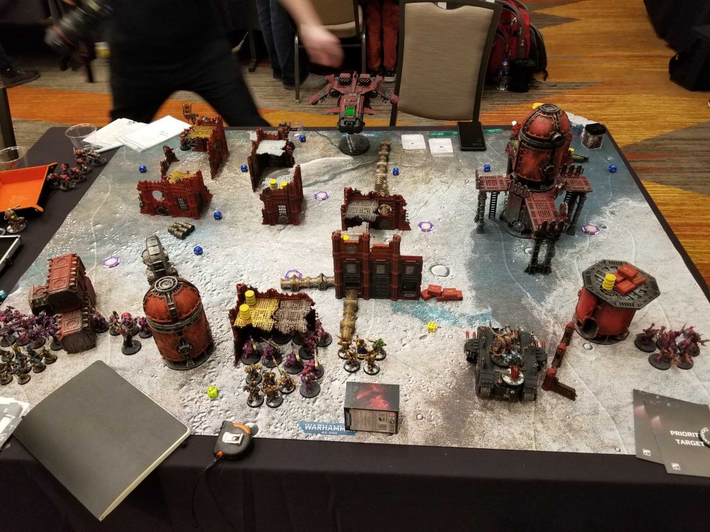 on fire. He made 5+ feel no pain rolls left and right and shrugged off major hits to cause us some real trouble early on, killing a unit of Possessed and Warp Talons with ease, then crashing into our ranks.