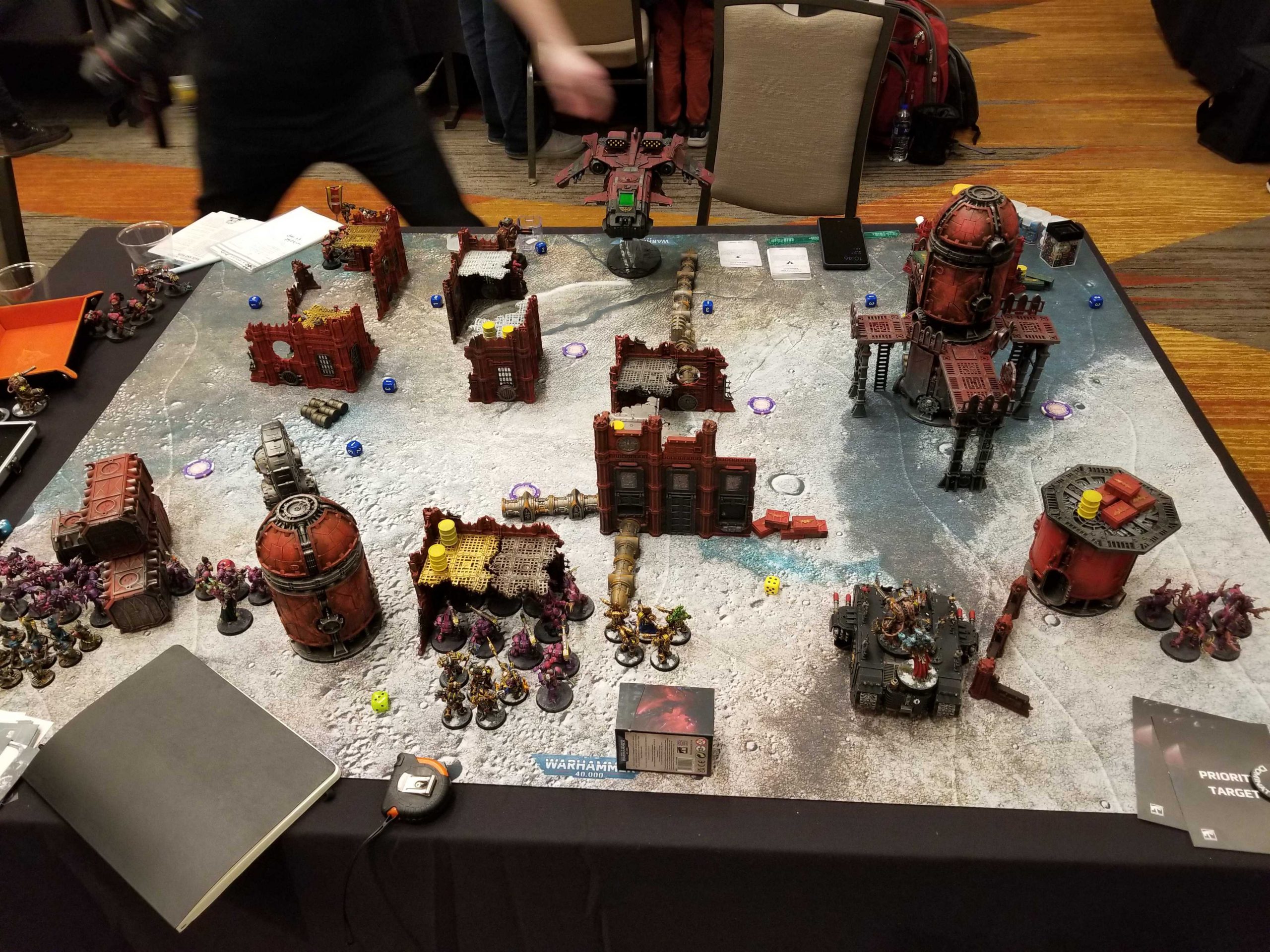 We collect our armies and offer painting critiques to each other for a bit, looking at all the cool details on the GH submissions. I've gotta figure out a display board situation for this army. I had a rough plan for something better this year, but FLG couldn't get me a new carrying tray and mat shipped inside of three weeks (and still haven't so much as let me know the order status in the five weeks since my order was placed), so I ended up having to borrow a tray from Contemptor Kevin last minute.