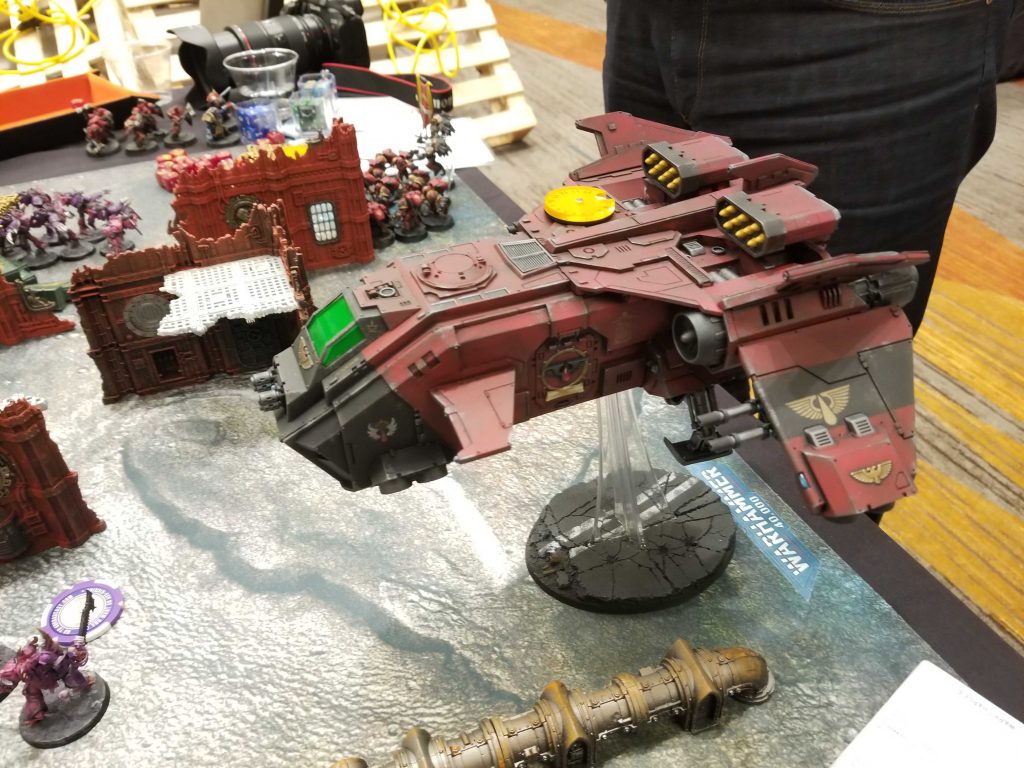 With the Day 2 games complete, it's time to set up for paint judging and grab some dinner. A number of players have been invited to the showcase, basically putting them in the running for Best Painted, and I'm one of them. I like my army a lot, but it's facing some very, very stiff competition. I think the toughest are probably Craig "MasterSlowPoke" Sniffen, whose Rainbow Warriors are insanely good, and Campbell "SRM" McLaughlin, who gets tons of character and amazing heraldry details onto his models. JD "TheArmorOfContempt" is also in the running, as his models are technically perfect, but tend to be a bit flat. And there's Jack, whose Blood Angels look amazing, but aren't quite as good as his Imperial Fists - if he brought those, I'd have no chance. As it is, I think I have OK odds, but will just be happy with a top 5 finish against these incredible hobbyists.