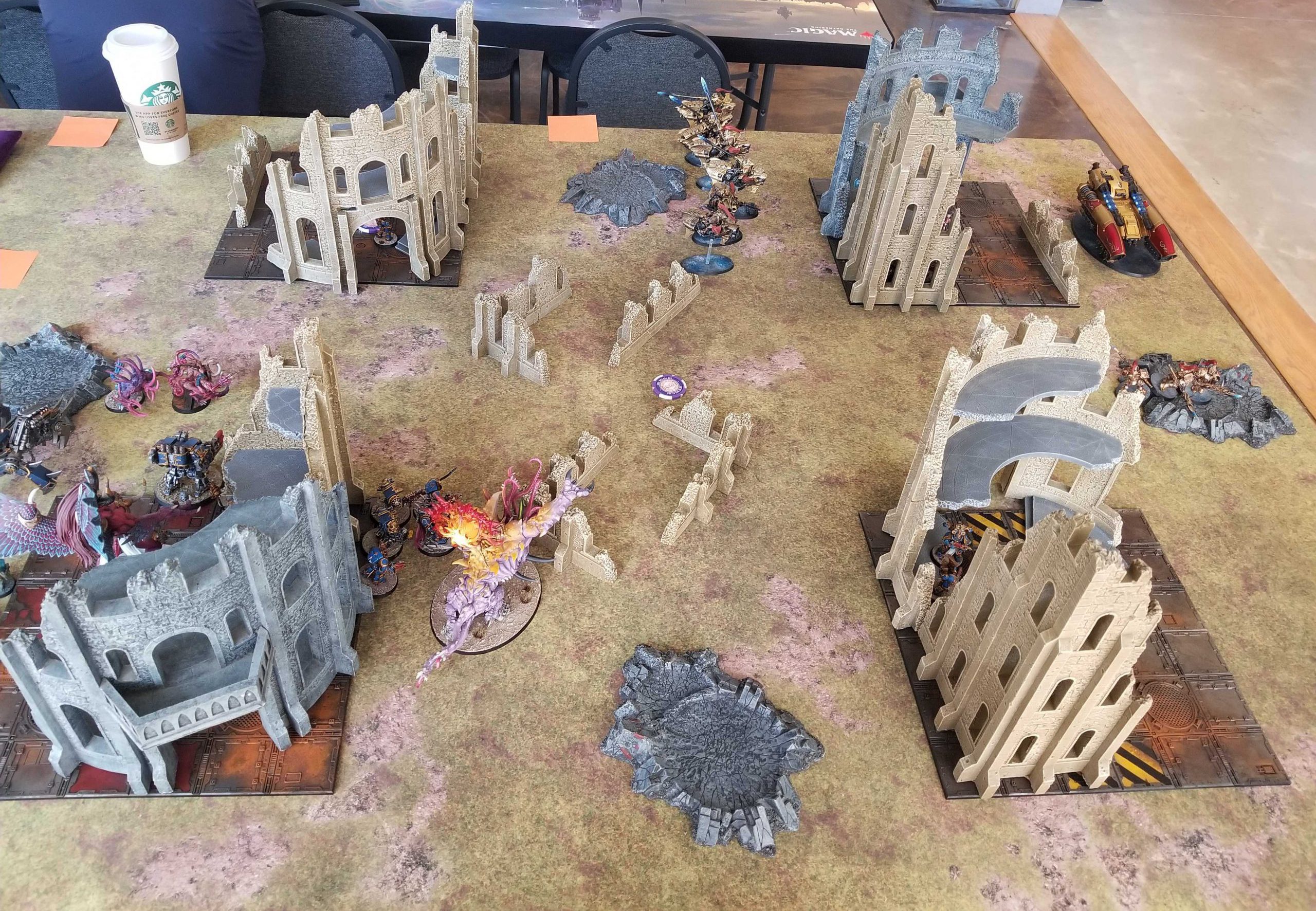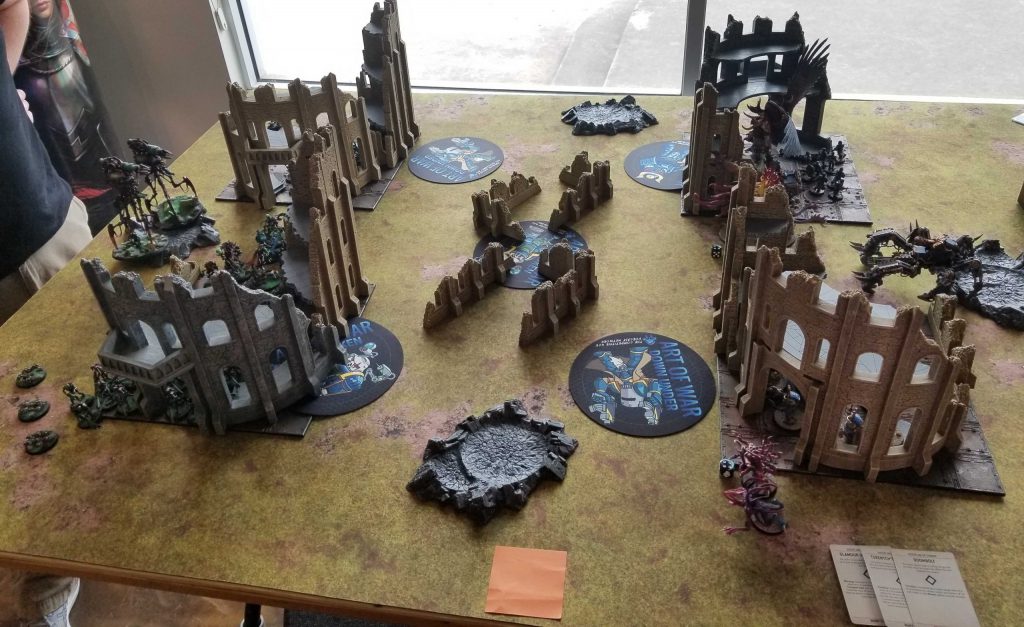 There are 14 players at the event and four of them are playing Adeptus Custodes. Welcome to the new 40k meta. Paul spent a lot of time away from 40k and is just now returning for 9th edition. I'm informed that this is his 7th game of 9th edition after 6 test games with his Custodes army.