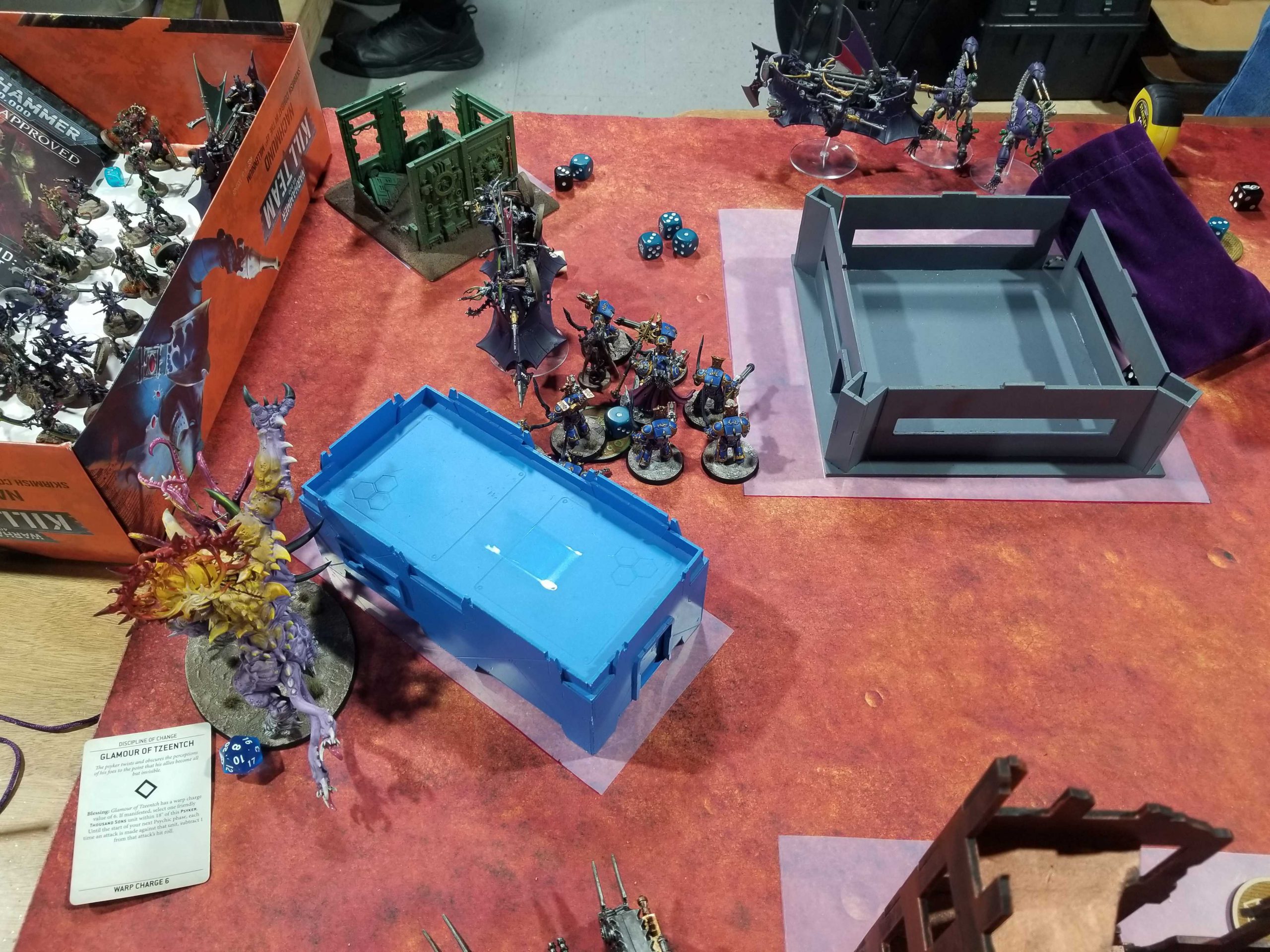 Again, I don't mind this so much, as I haven't left Joseph with any turn 1 charges. Unlike my Death Guard, who really want the extra turn of movement, the Thousand Sons play much more reactively, and so aren't desperate to have the first move. That said, they do really want first turn to throw up defensive buffs, but those aren't as necessary against Crusher Stampede.