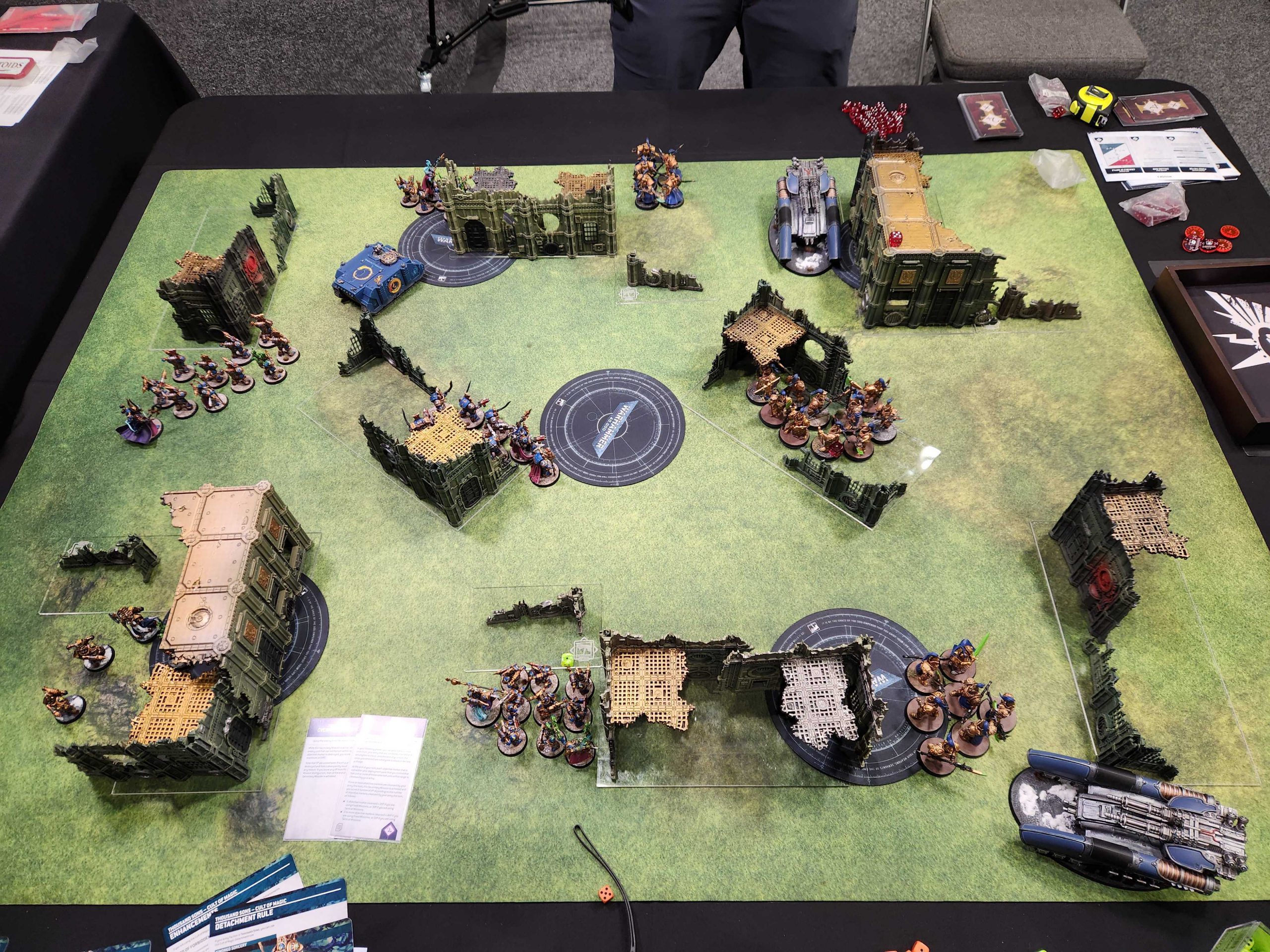 The plan is to hide Magnus as best I can so he only gets shot by one tank turn 1 while not putting him so far back he can't operate - I need him to move forward and help kill things turn 1 if I want to have a chance. Then I need to stay out of combat for as long as possible. I'll be using Twist of Fate to drop units to their 4+ invulnerable save and trying to down them with volume of fire.