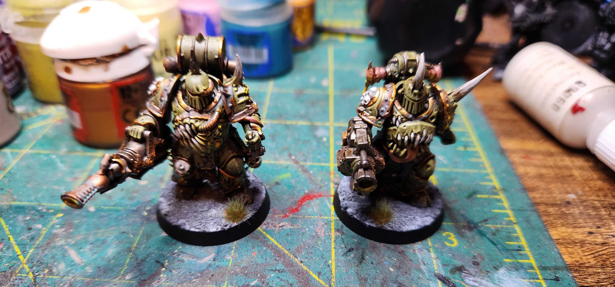 The only catch here is that I need to paint two models for this list - a Plague Marine with a plague spewer and a Plague Marine with a Blight Launcher. That's fine - they paint up fast enough. I also do some touch-up work on my Biologus - he was