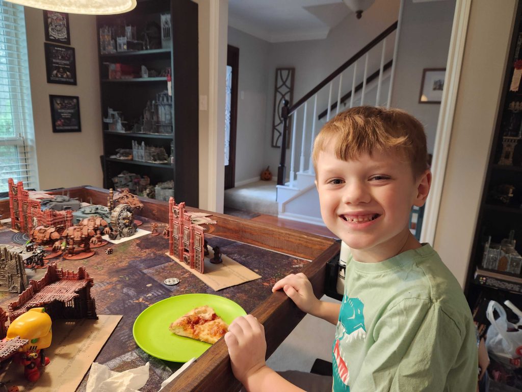 We ended up playing Servo Skulls, as Andrew mentioned that was a mission the Asgard TO, Dan "Swiftblade" Richardson, likes to run. Andrew pulled the first turn, which is normally very good on this mission, but he can't afford to kick any objectives to me or I'll sticky them on my turn. I had some extra help this game from my son, who I'm planning to bring to Atlanta. In the meantime I'm trying to get him more into the game but it's been slow going - he doesn't