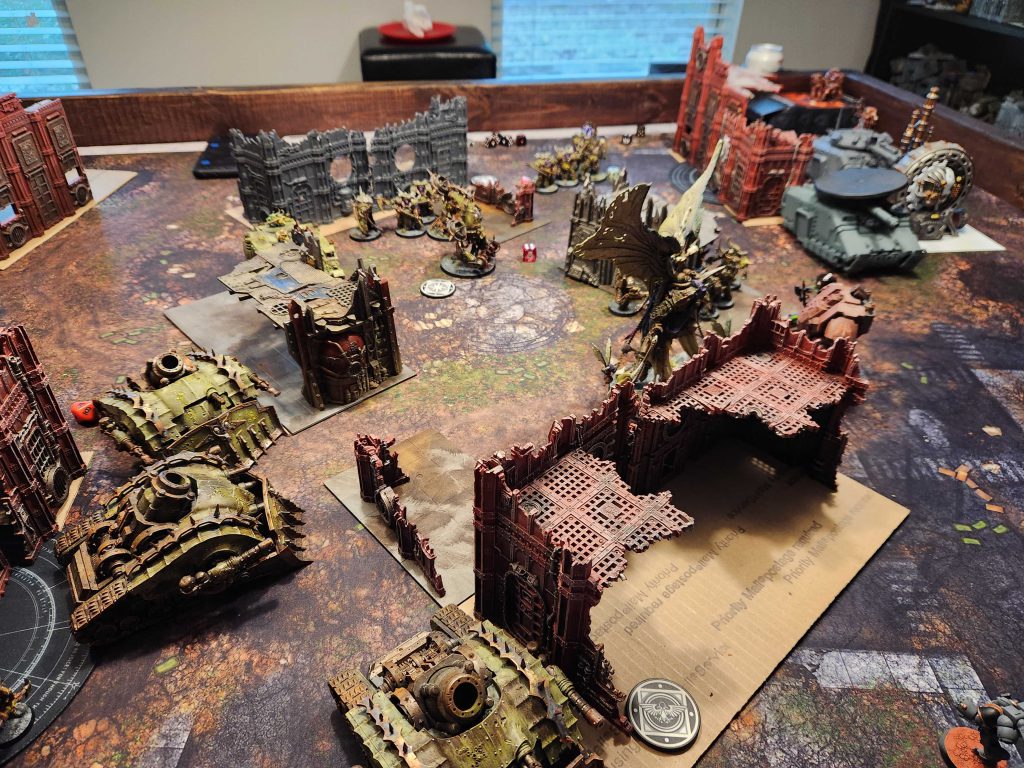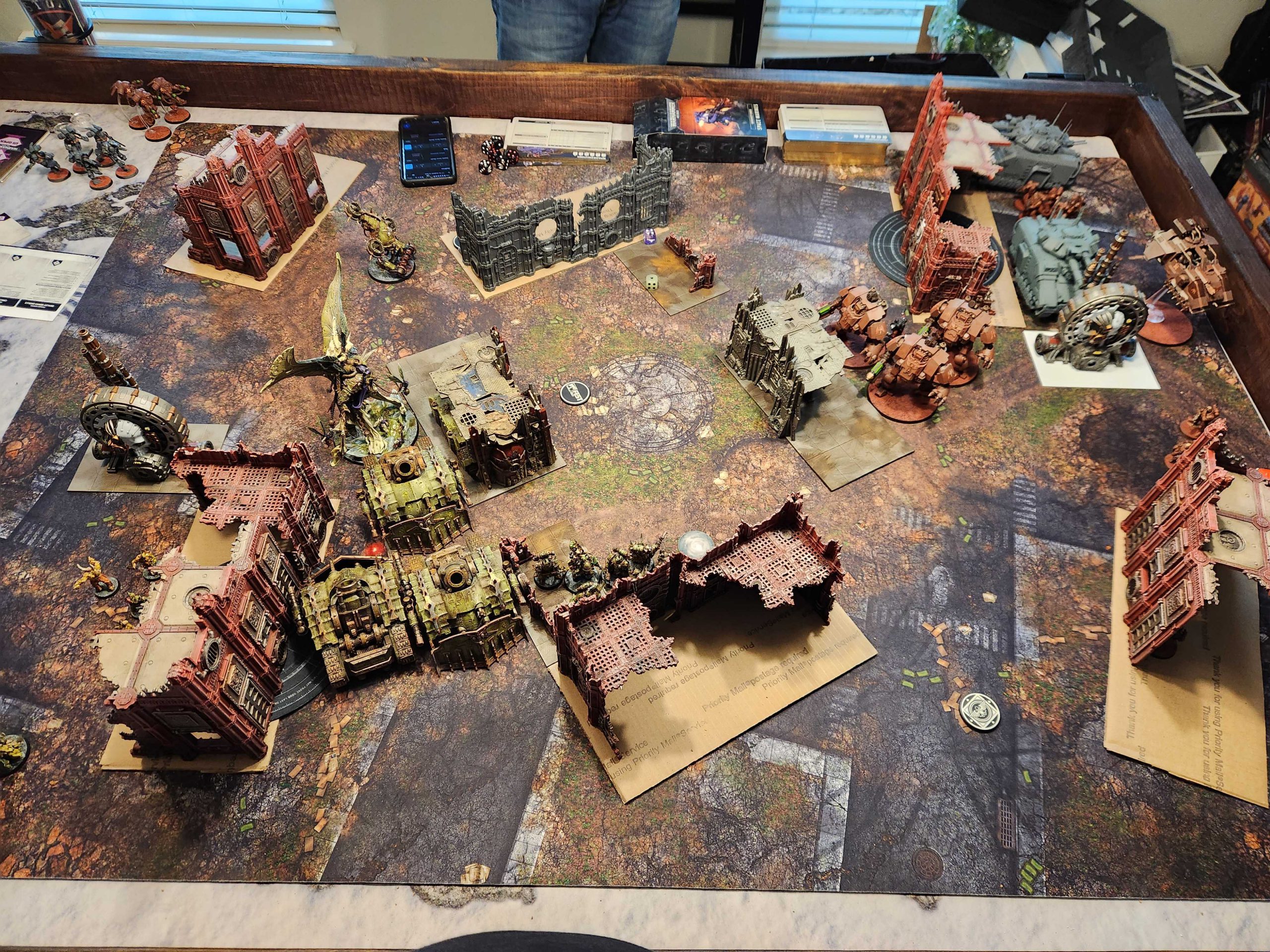 I end up tabling Andrew by end of round 4, but we call it on 3. There wasn't a ton Andrew could do and when he lost two Redemptors in one turn - and he lost them by a lot - the game was pretty much over. The Chaos Lord put in