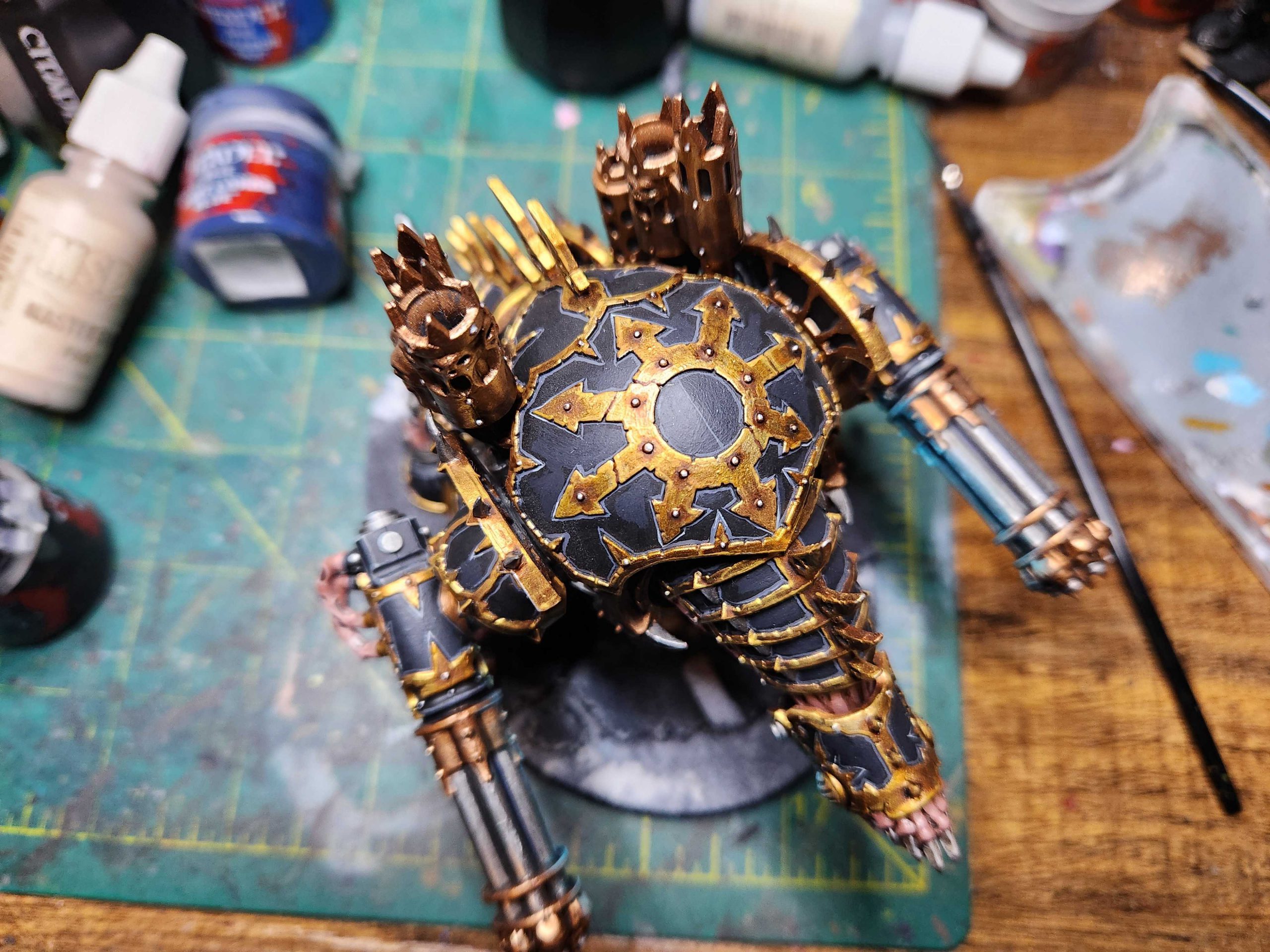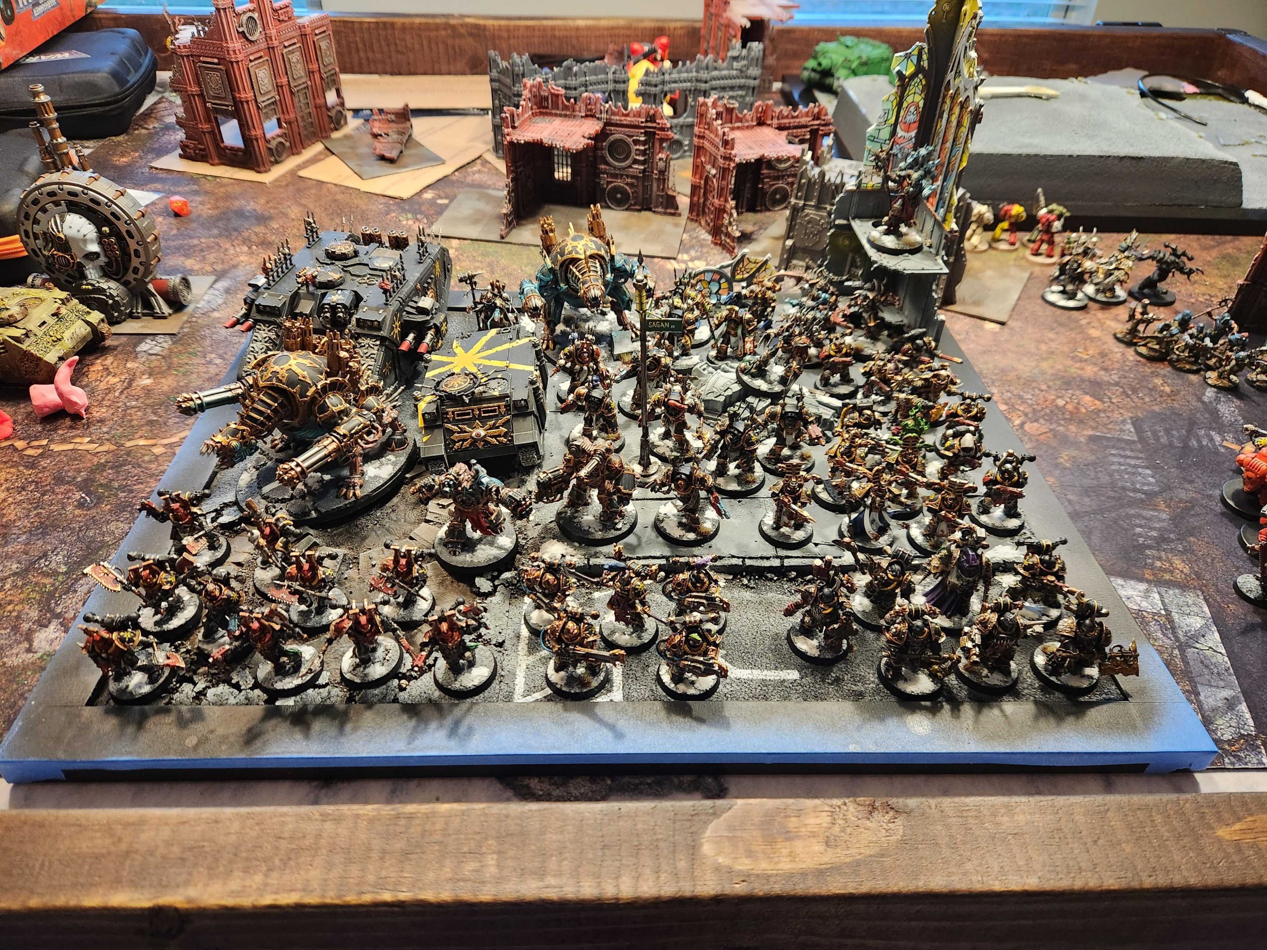 Alright let's take some photos of these bad boys to show off my hard work. A lot went into this army and I'm extremely proud of how they look - my best army to date and it isn't close. It's still got decent power - there's a unit of Forgefiends and Berzerkers and a big blob of Terminators - but it also goes hard on the theme in that I'll have one unit of each god in every game I play. On the whole I'm very happy with how it turned out and excited to take it to Atlanta. The hard part will be traveling with it but I think it's just small enough and infantry-heavy enough that it should easily fit into my large Citadel case.