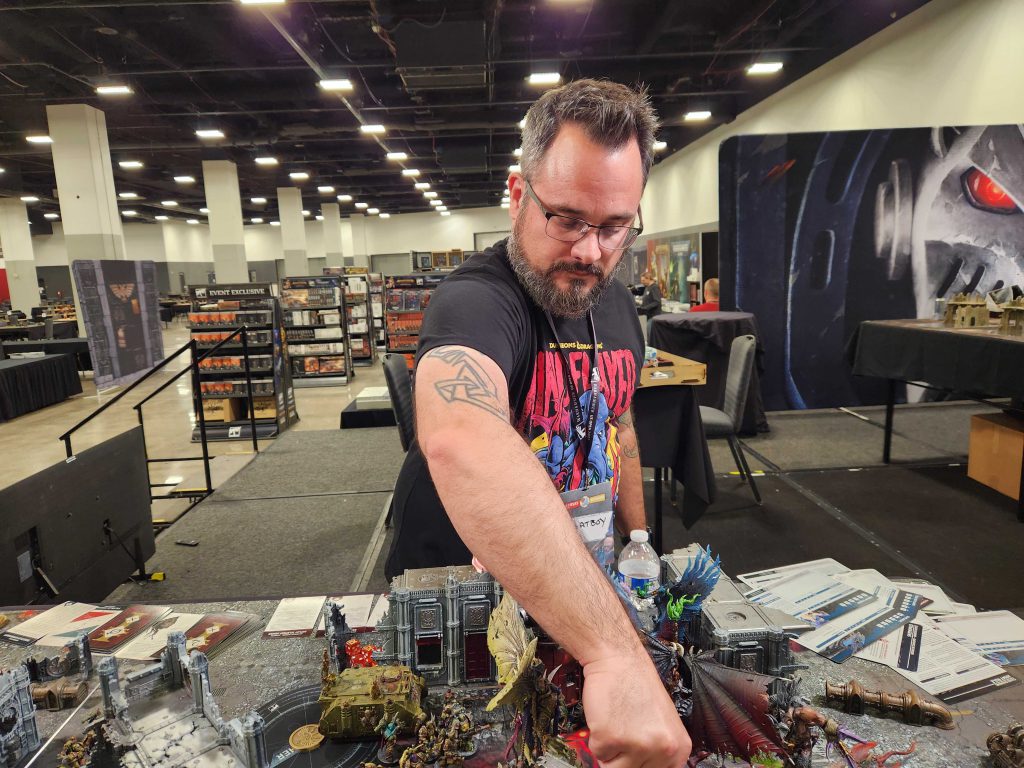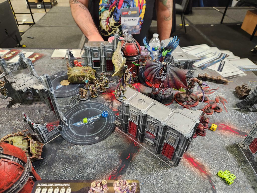 With an exhibition game like this the goal isn't so much to win - I'd like to do that if possible, though - it's more to show off cool stuff. I specifically asked for Mortarion so GW would have to show off his Datasheet, and likewise for the LoV and the PBC interaction, which I think is one of the cooler parts of the army. My goal generally is to push some models forward, see how things go, and test interactions. There's nothing at stake here and I haven't played Death Guard yet in 10th, nor have I looked at the rules for Daemons so it's not a situation where I'm real concerned about outcomes or taking the game to time. We were politely asked to keep it close, a stipulation which Thomas and I agreed to ignore.
