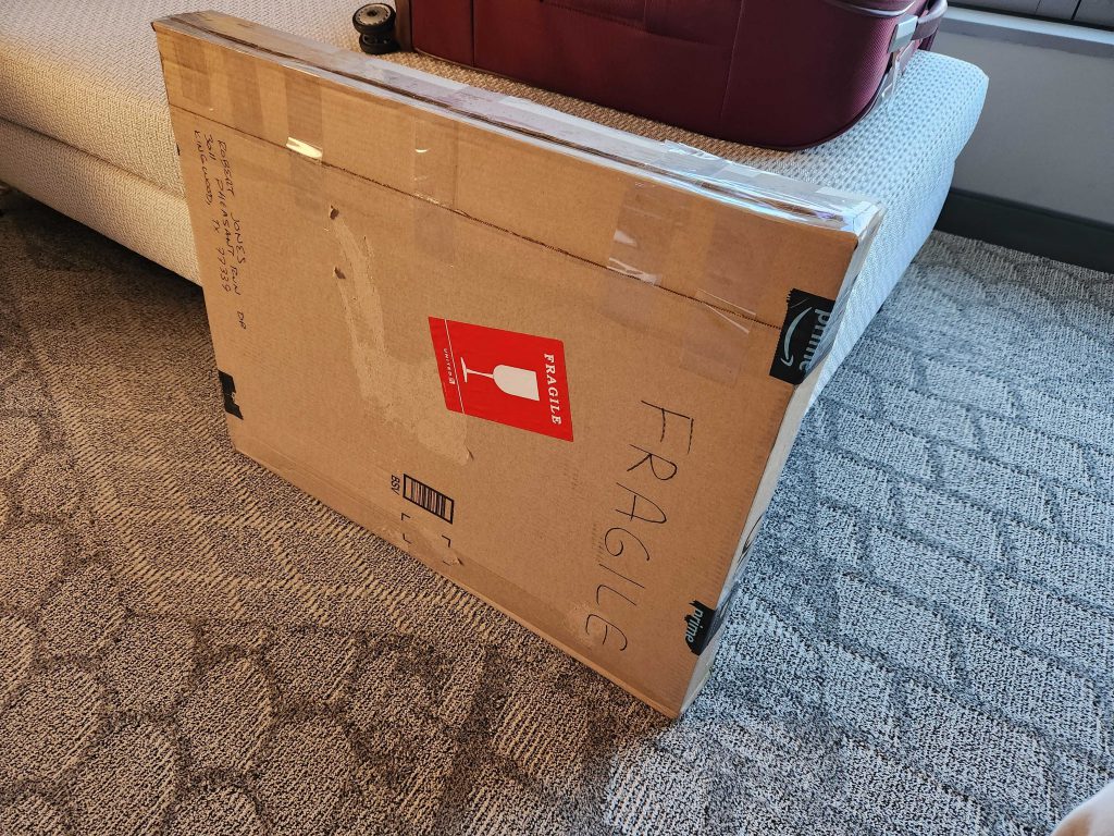 We touch down around 4:30 and from there grab bags and another Astros Militarum player (James), then share the 30-minute Uber to the hotel. The Sheraton is expensive for a tournament venue (GW events tend to run with pricier hotels), but it