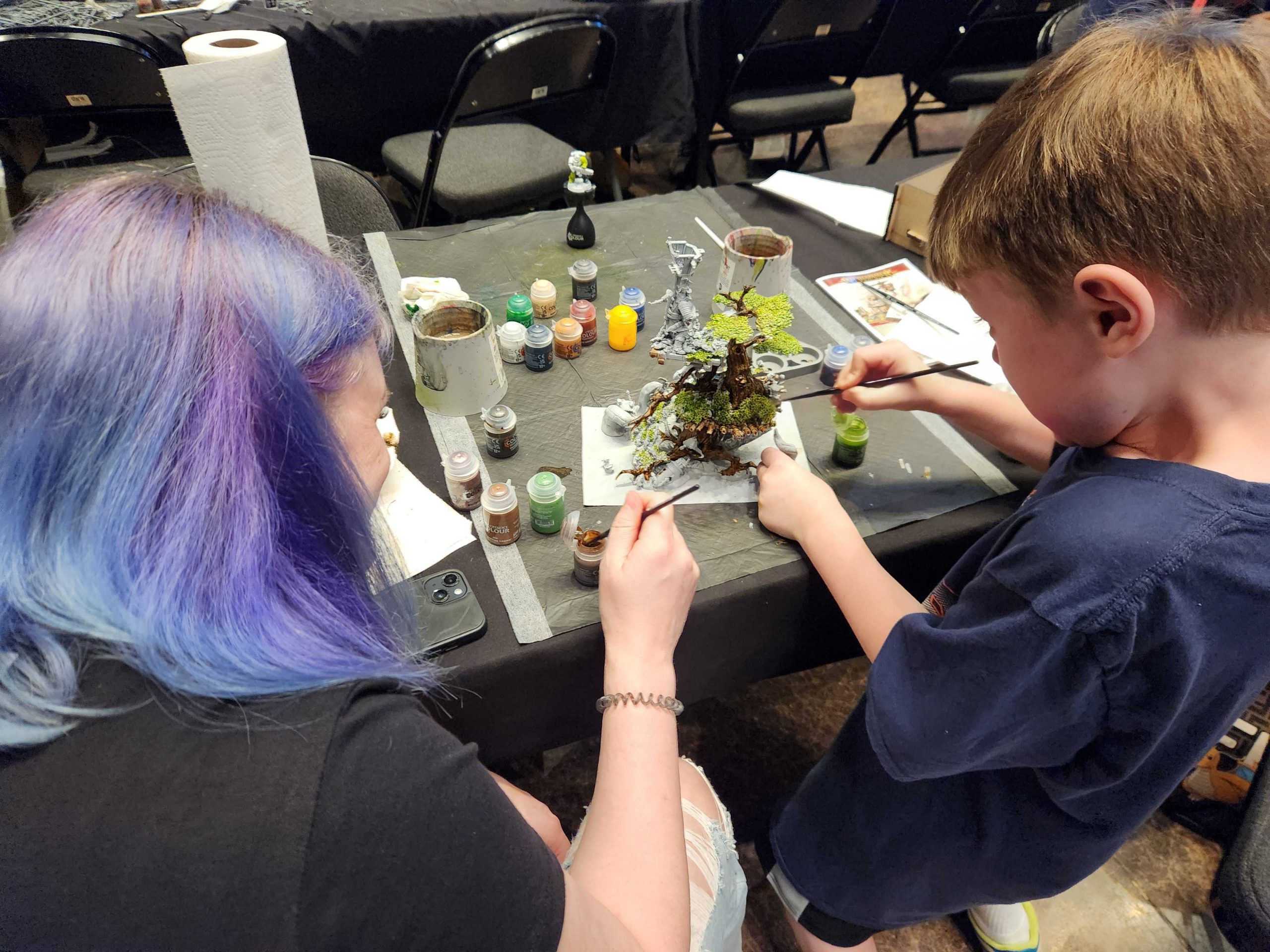 Welp, I'm beat and also at two losses. That means it's time to drop. I could play another round or two but it's just not what I'm into at this point and it means potentially going home early and being able to do a normal evening routine with the boy. I check in on him and the wife, who are hard at work painting when I head to dinner with the Astros Militarum.