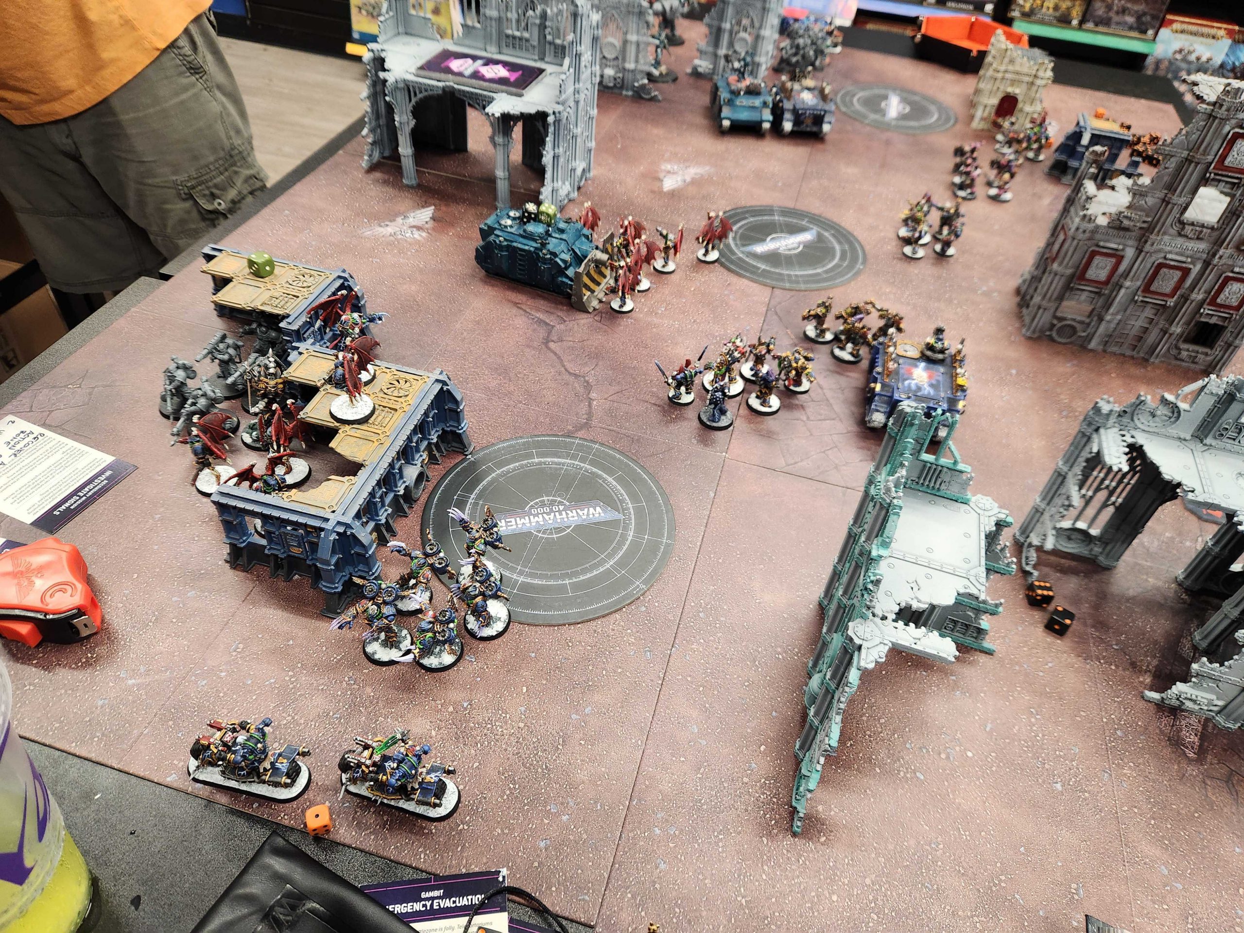 This game was pretty frustrating. Ultimately I think it was very winnable on my part, but every part of my army just felt pretty anemic - Haarken's raptors spent like two turns locked in combat with Havocs, just continually failing to kill them, while the Noise Marine battle-shock tests never caused a failure. The only bright spot were the bikes, who consistently put in work and were well worth the 70 points they cost.